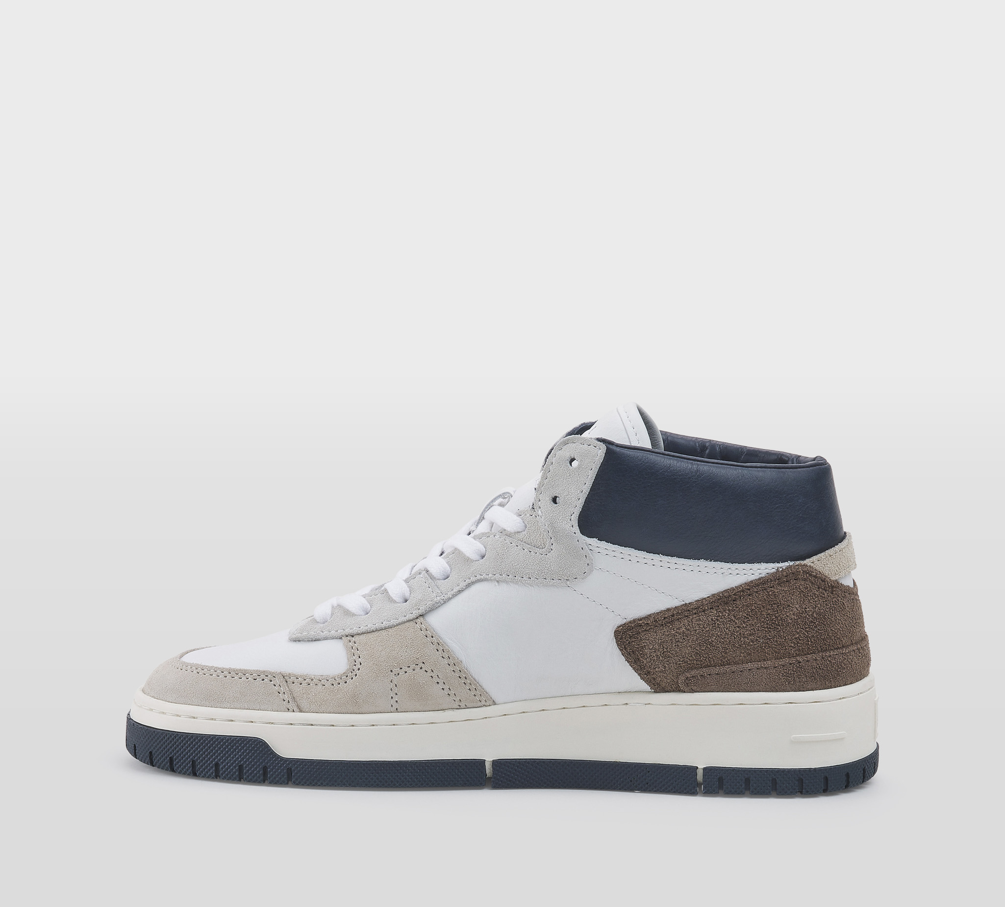 Sneakers Torneo in pelle banco -inserti pelle blu -inserti camoscio marrone beige -laccio bianco -plantare interno -calzata regolare Fondo gomma FW 25