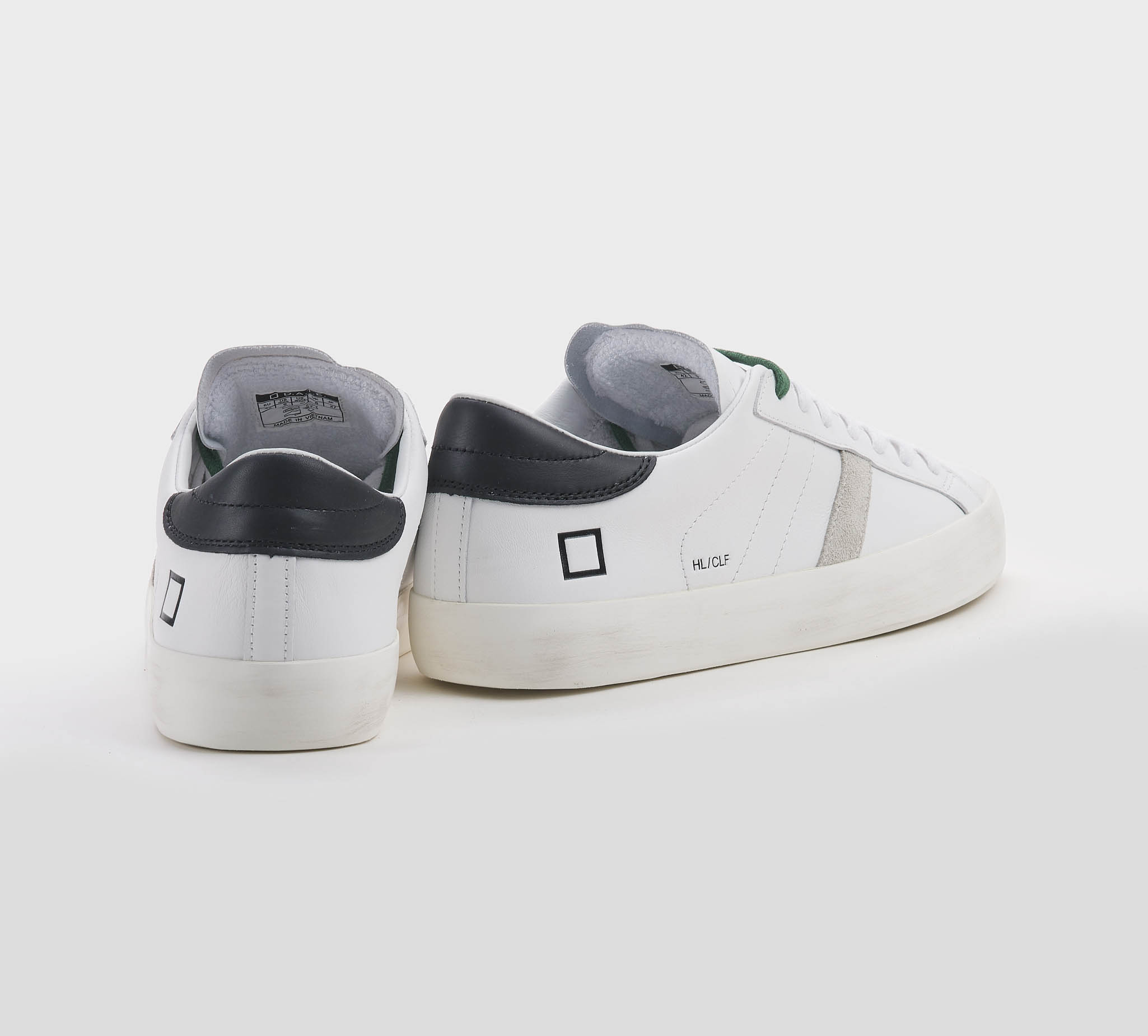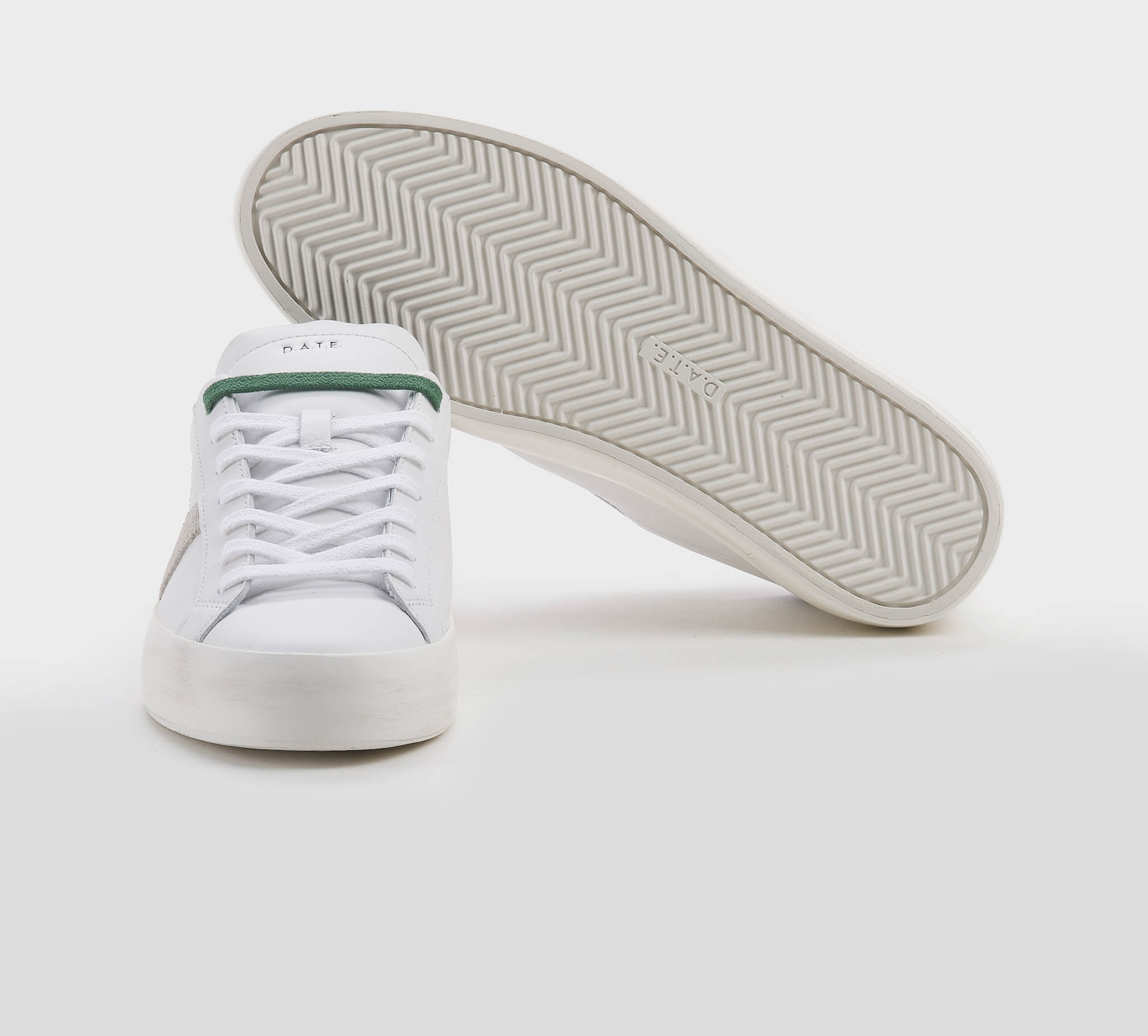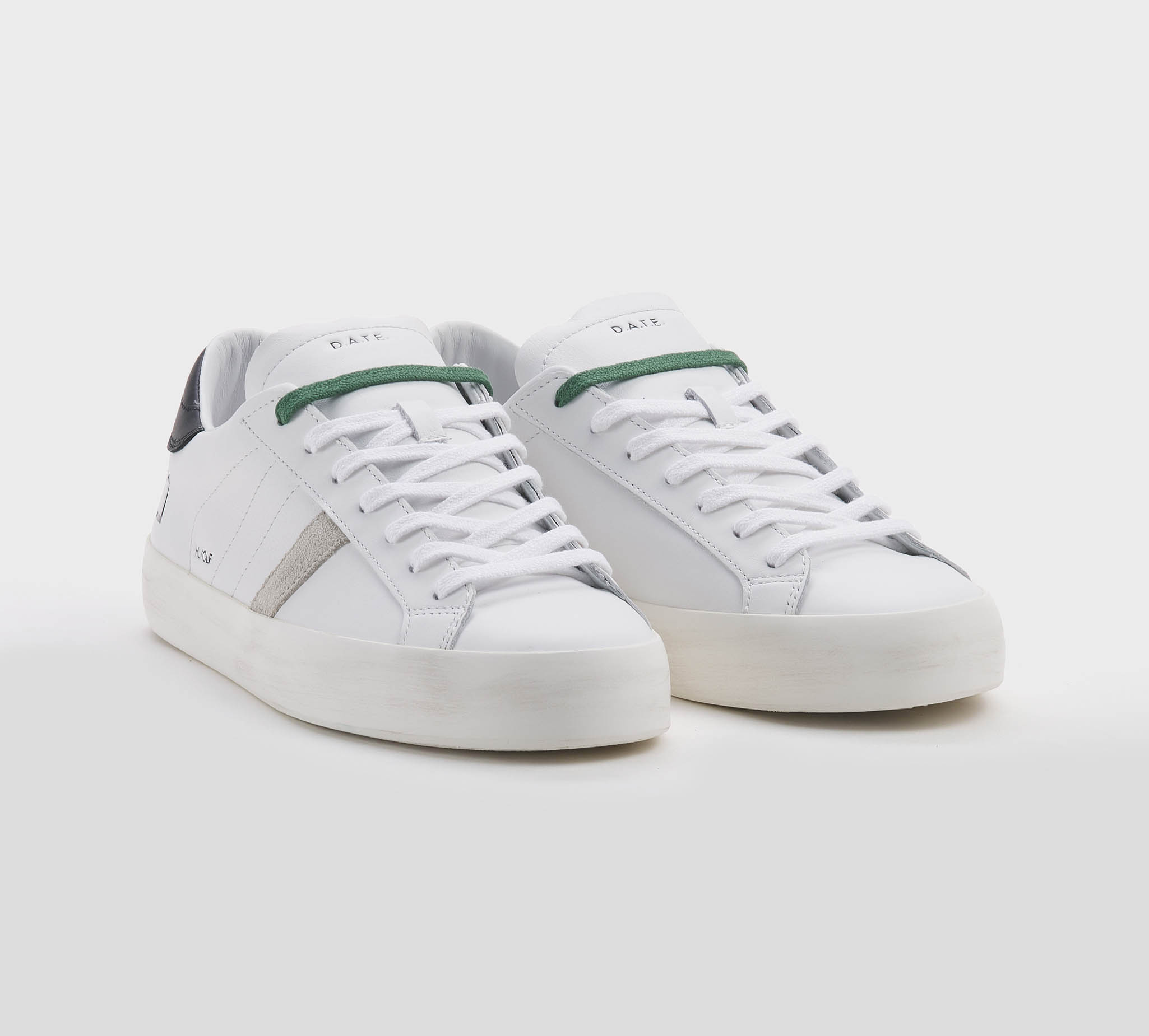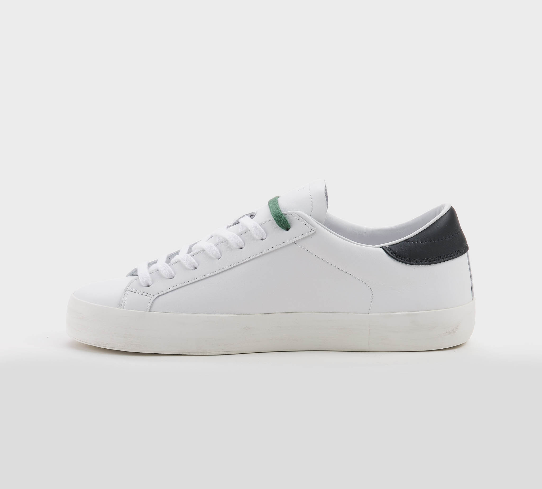 Sneakers in pelle bianco -talloncino pelle nero -doppio laccio bianco -verde -planatare anatomico -calzata regolare Fondo gomma SS 26