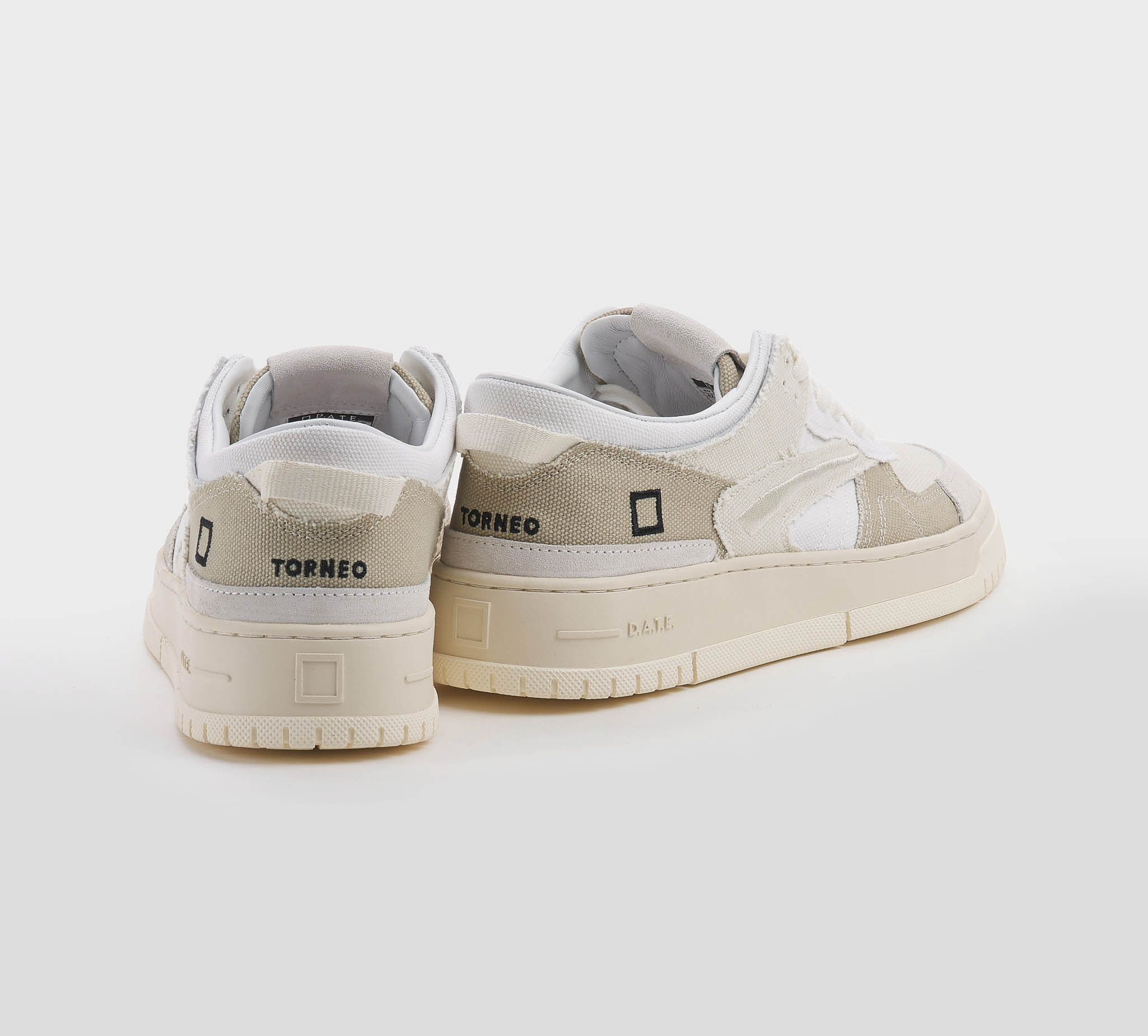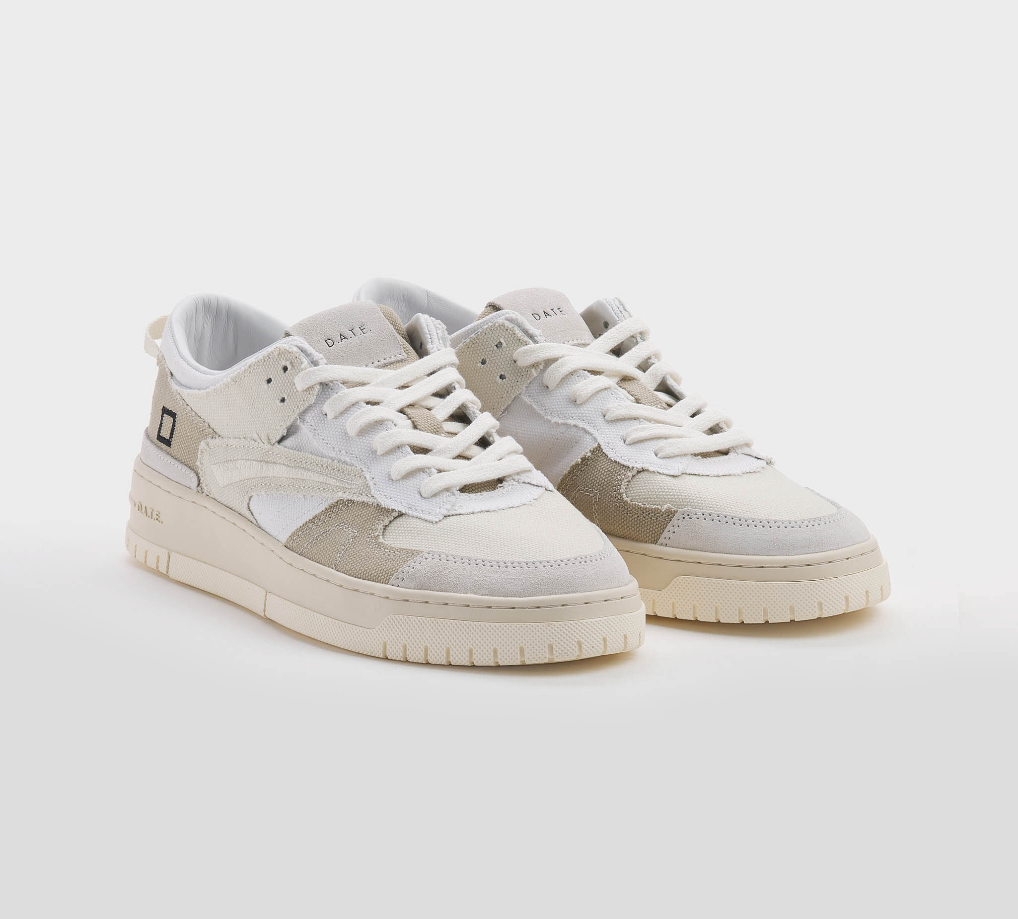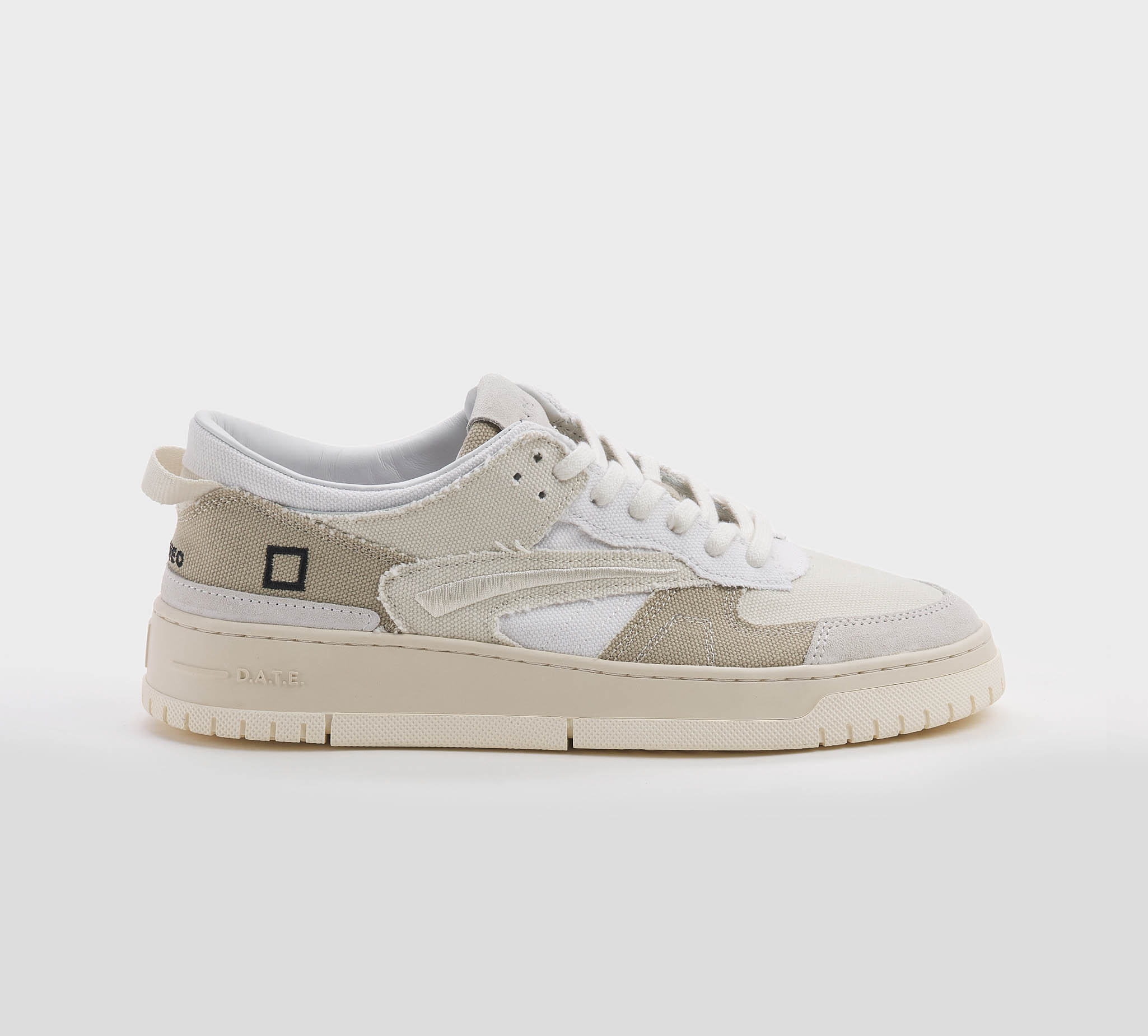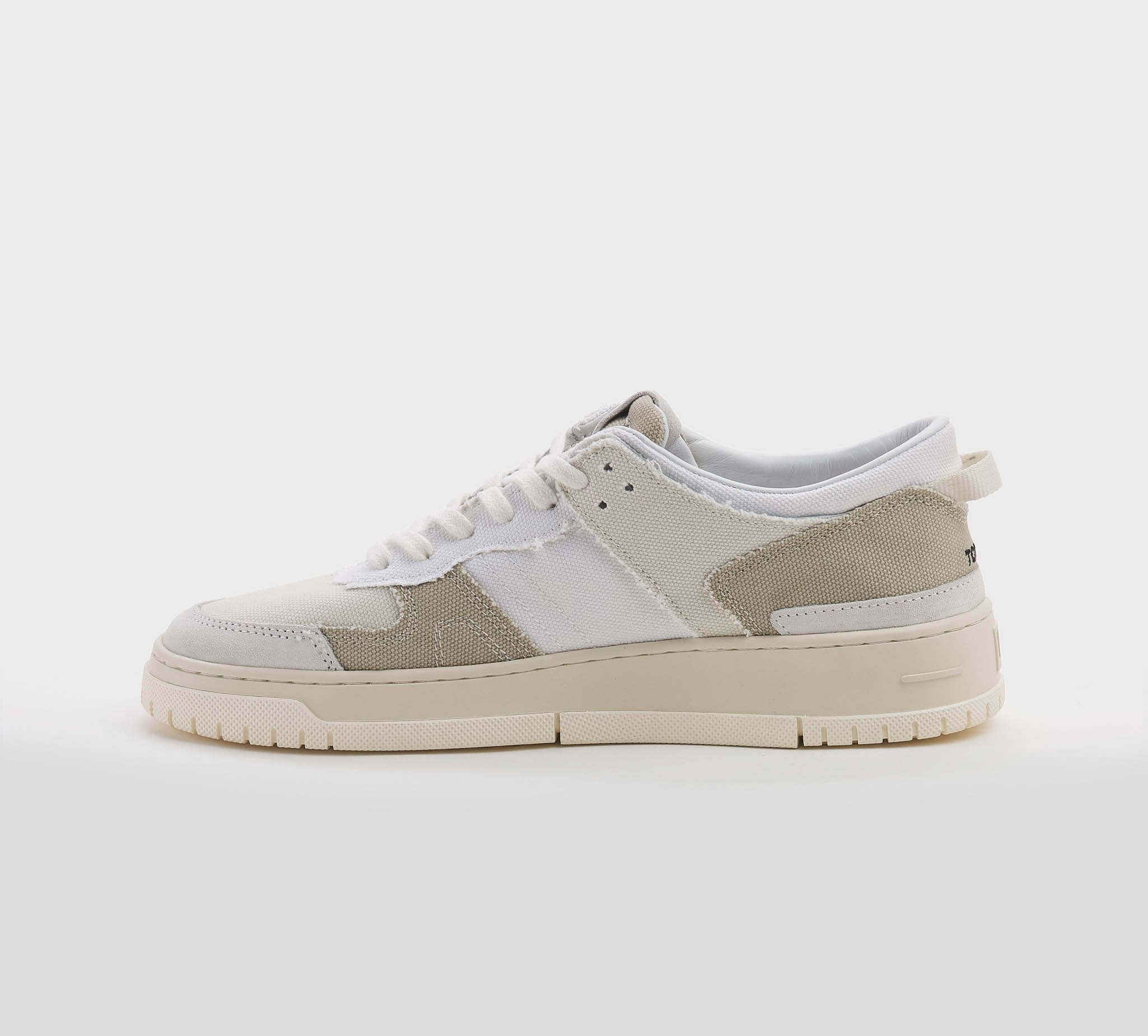 Sneakers in canvas bianco -inserti canvas crema e nocciola -laccio bianco -planatare anatomico -calzata regolare Fondo gomma SS 26