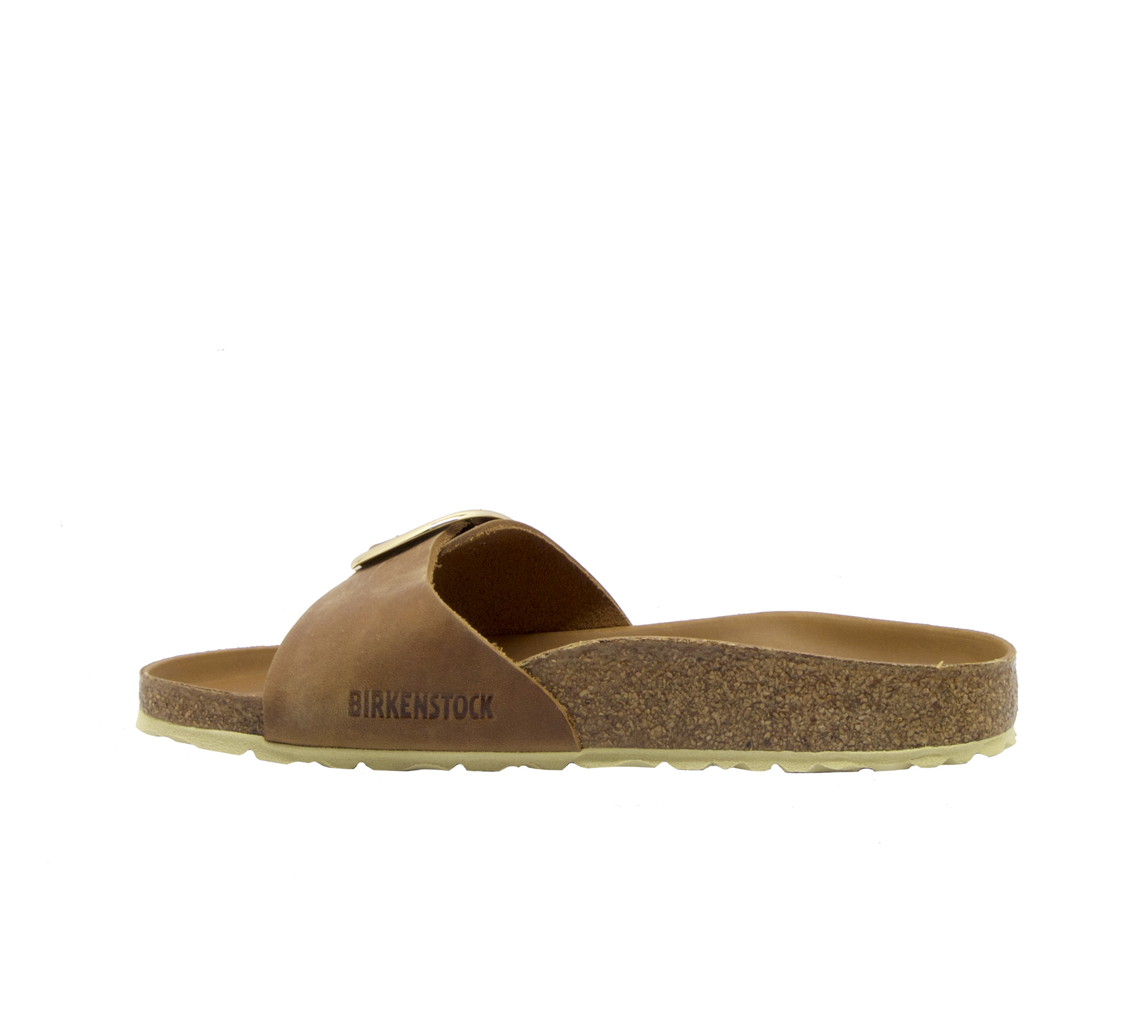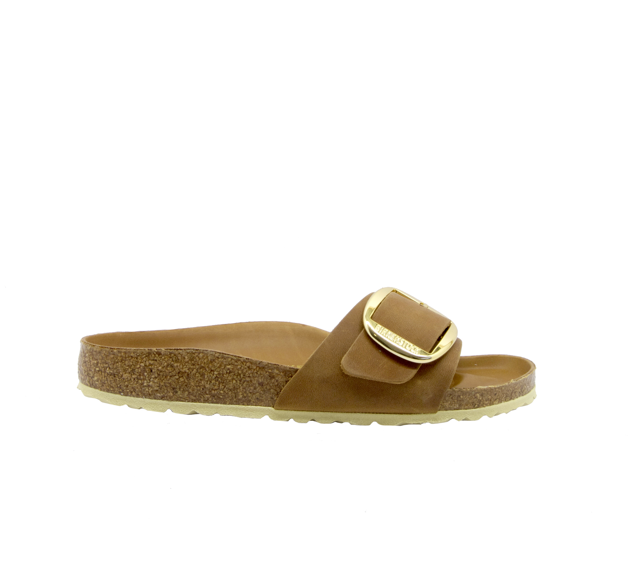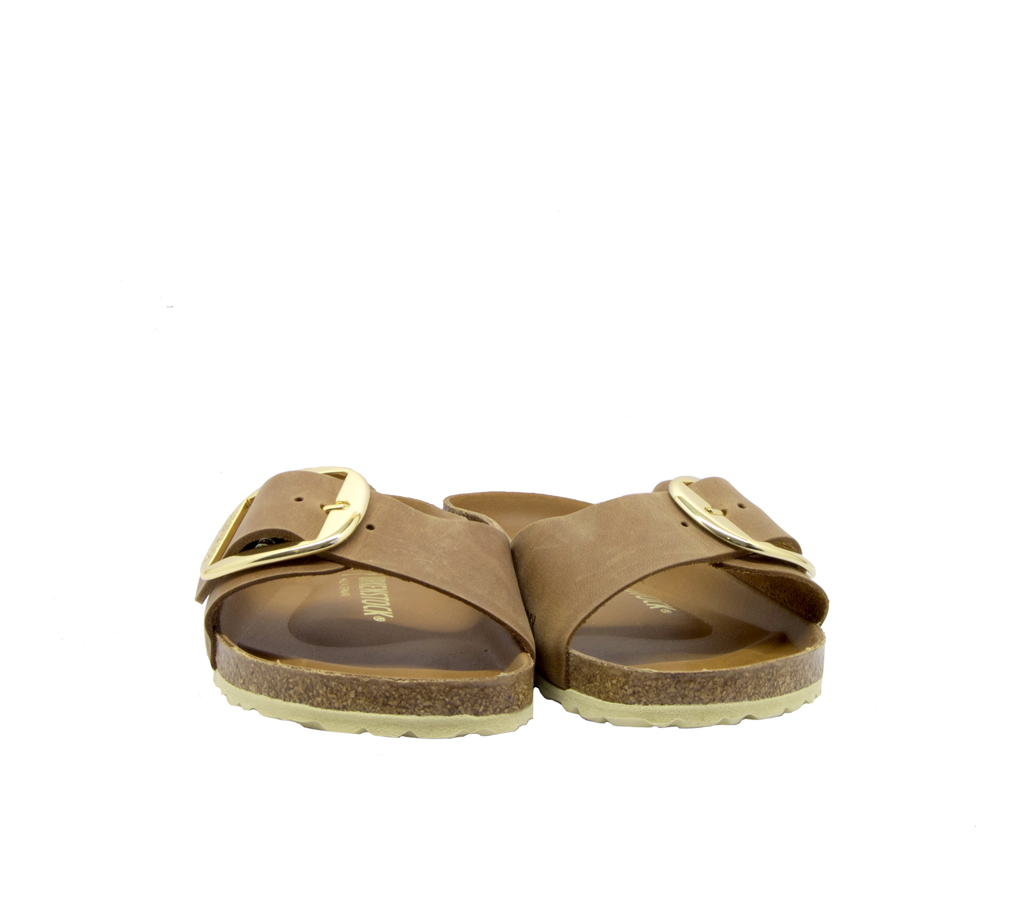 Ciabatta Madrid Big Buckle cognac -fibbia orogrande -plantare anatomico -fondo gomma crema -calzata regolare Made in Germany