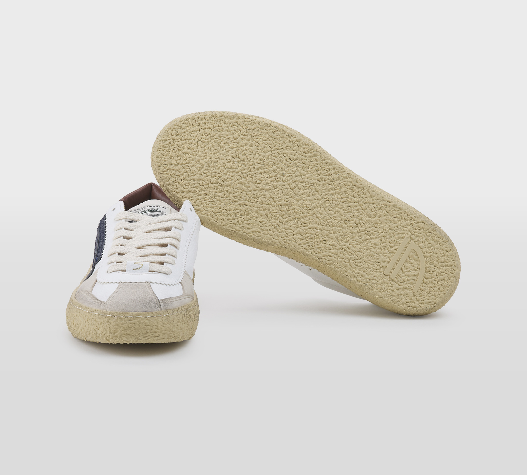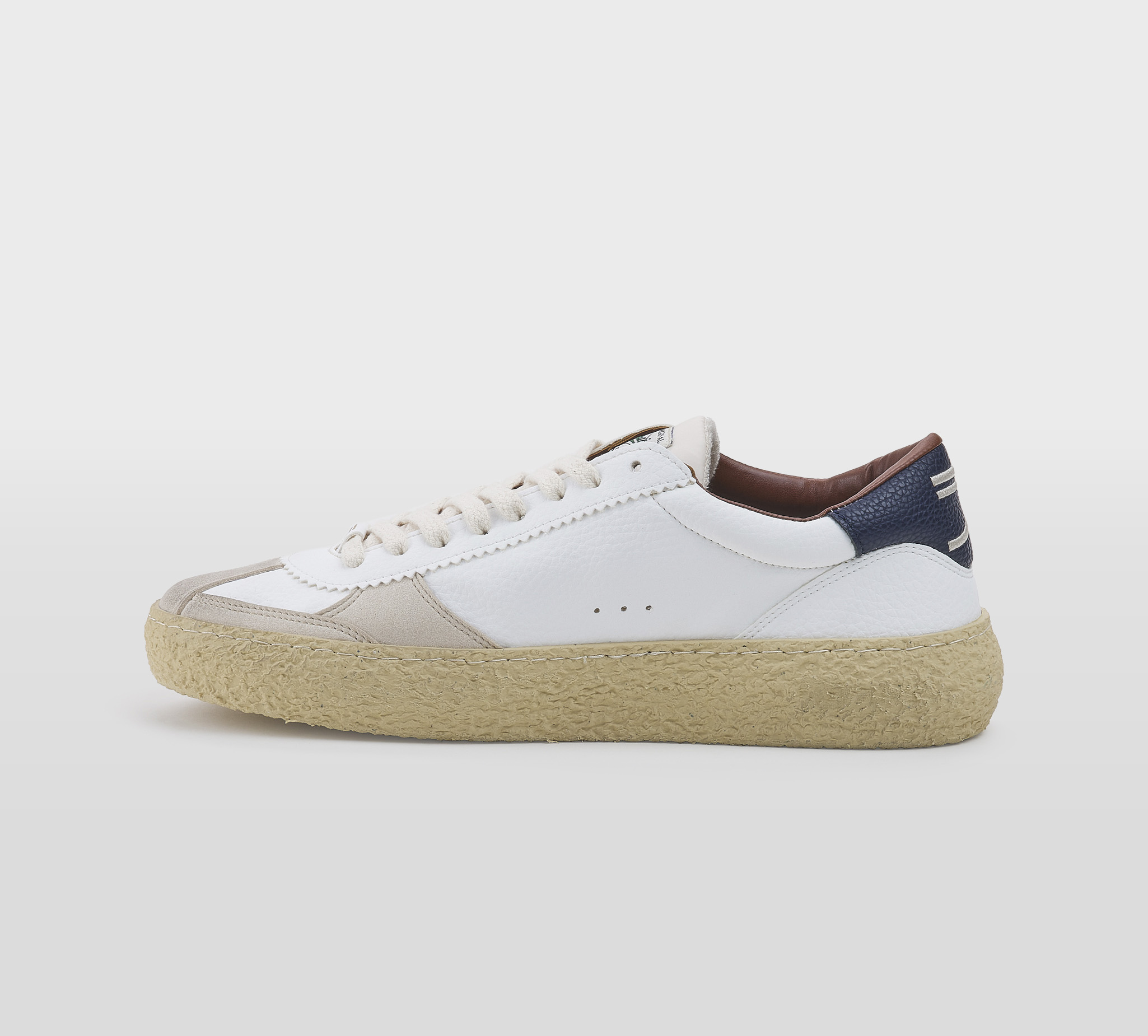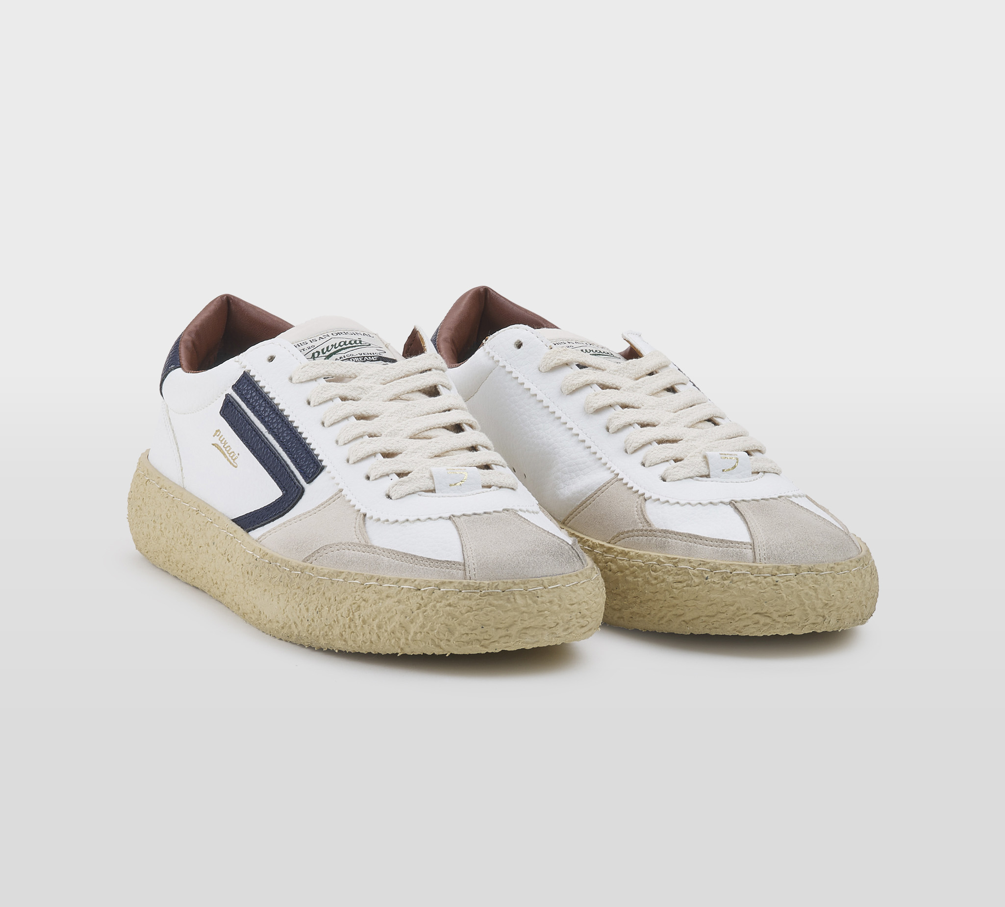 Sneakers in pelle bianco -bande pelle blu -talloncino pelle blu -laccio panna -calzata regolare Fondo gomma FW 25
