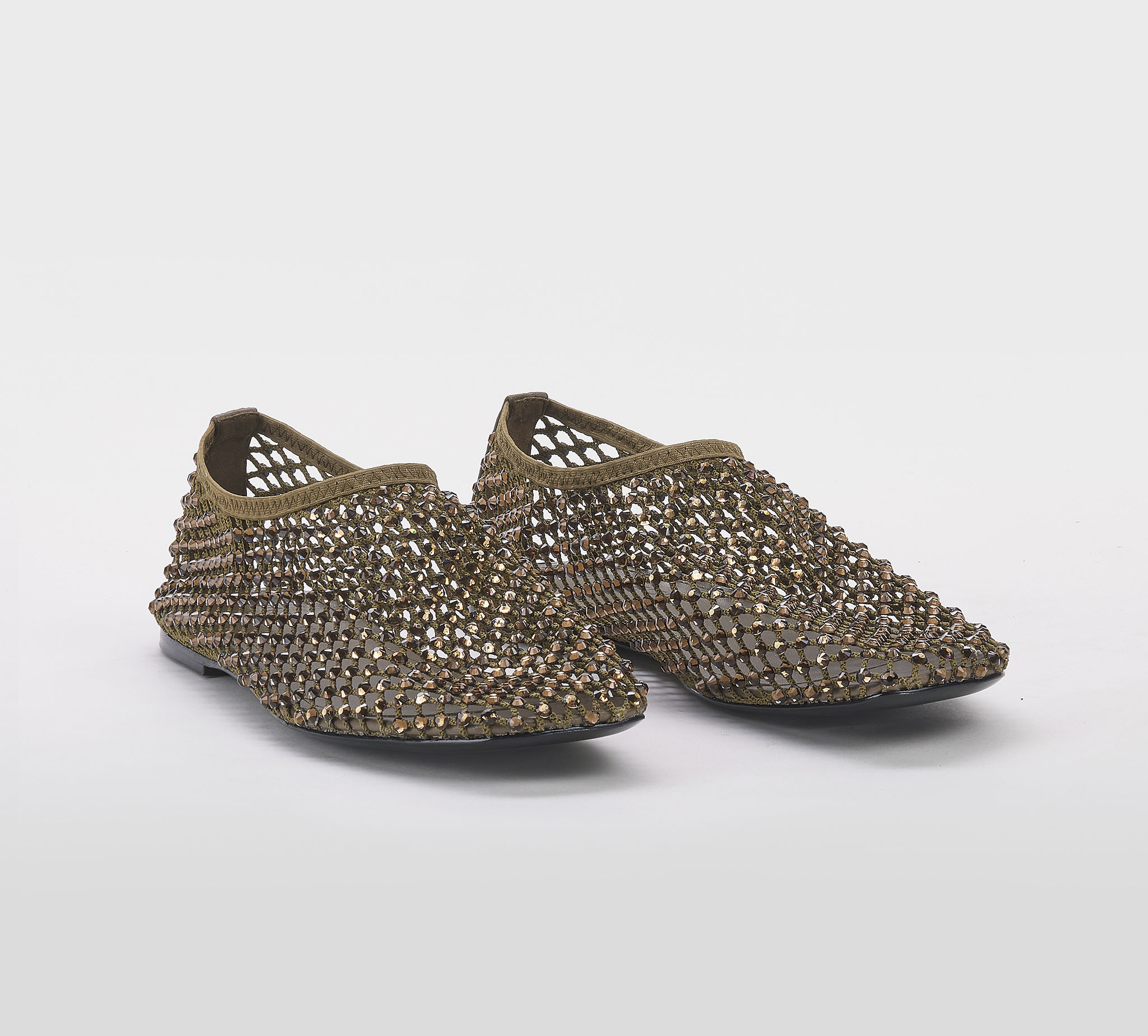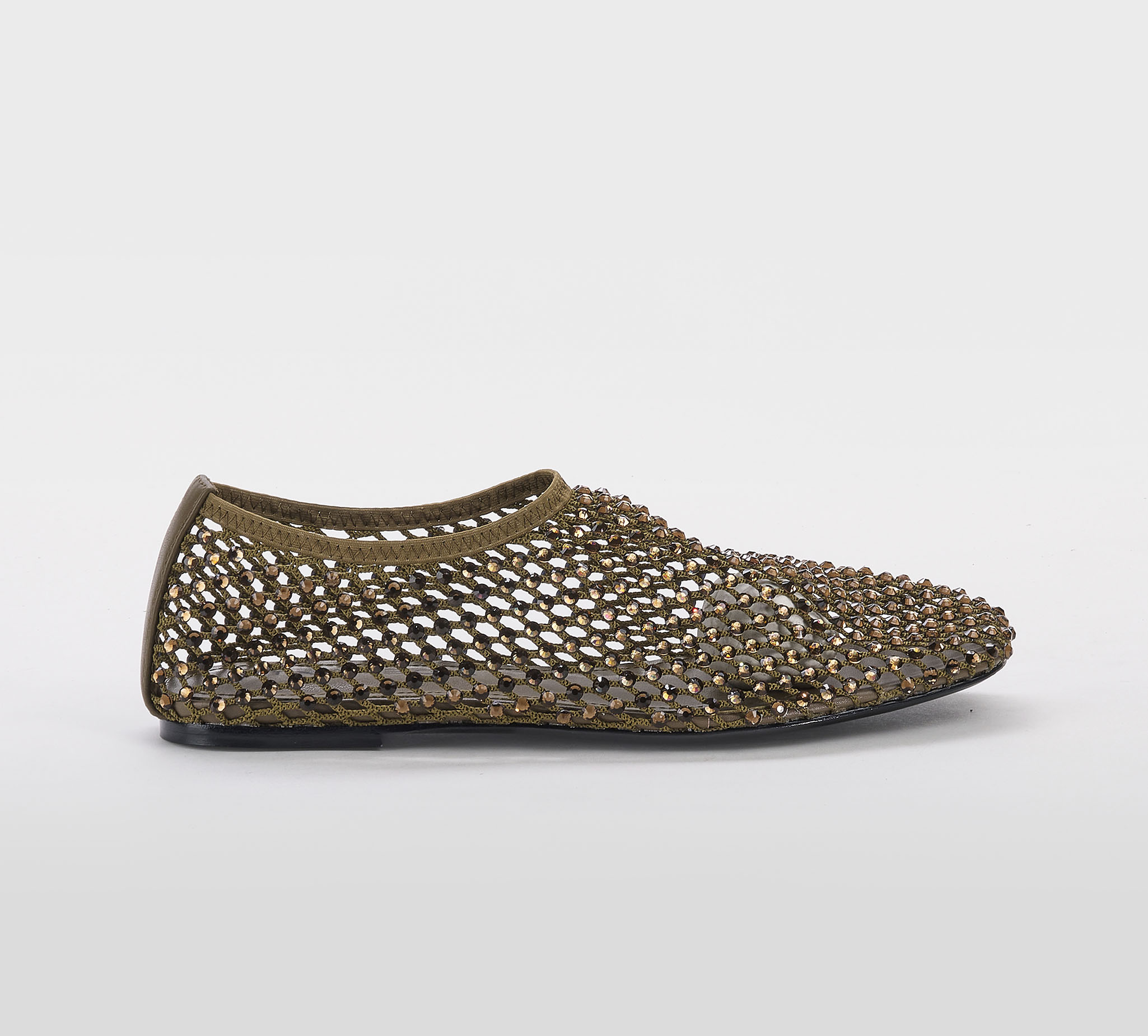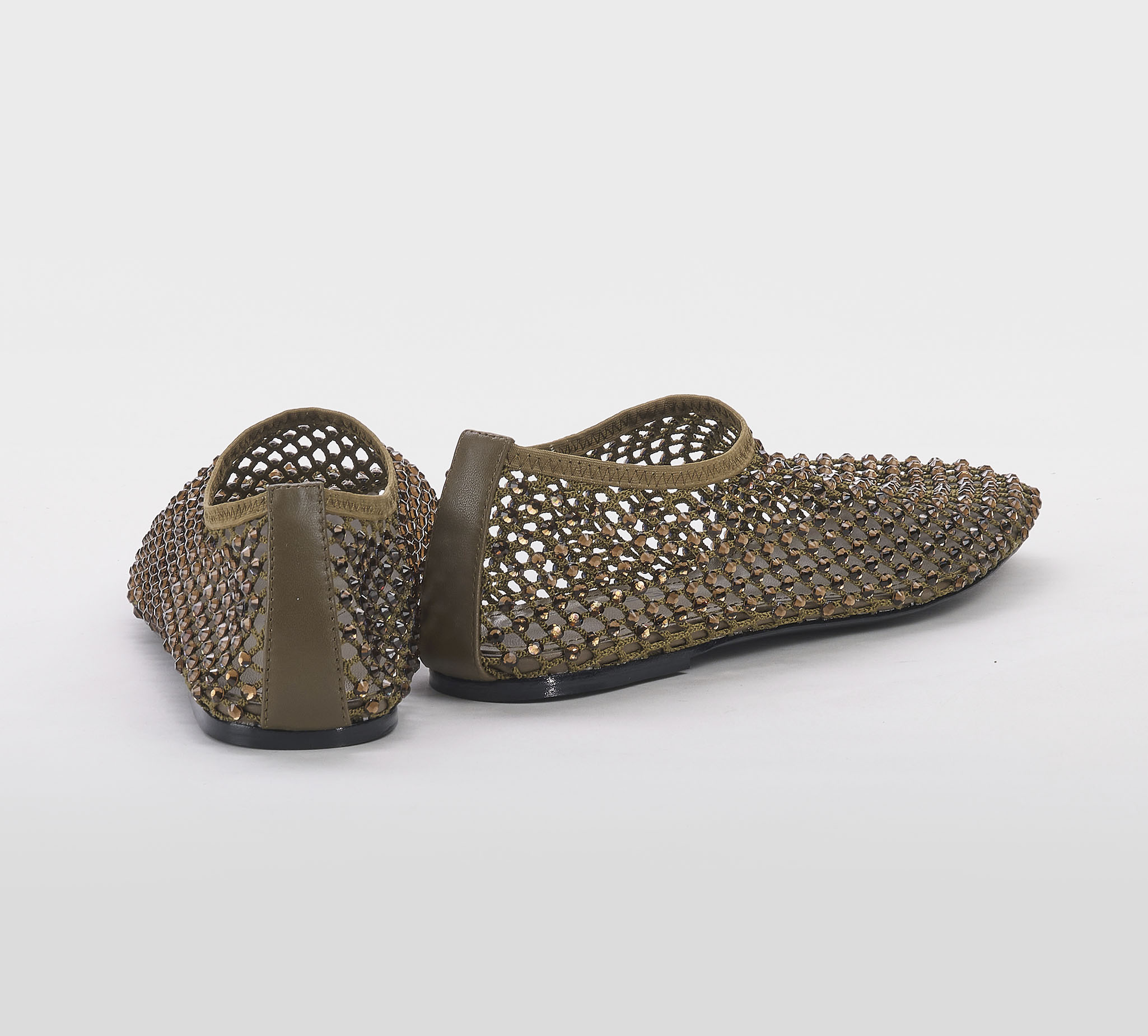 Ballerina in rete army -swarovsky bronzo -tacco cm 1 -calzata regolare Fondo cuoio Mde in Italy SS 26