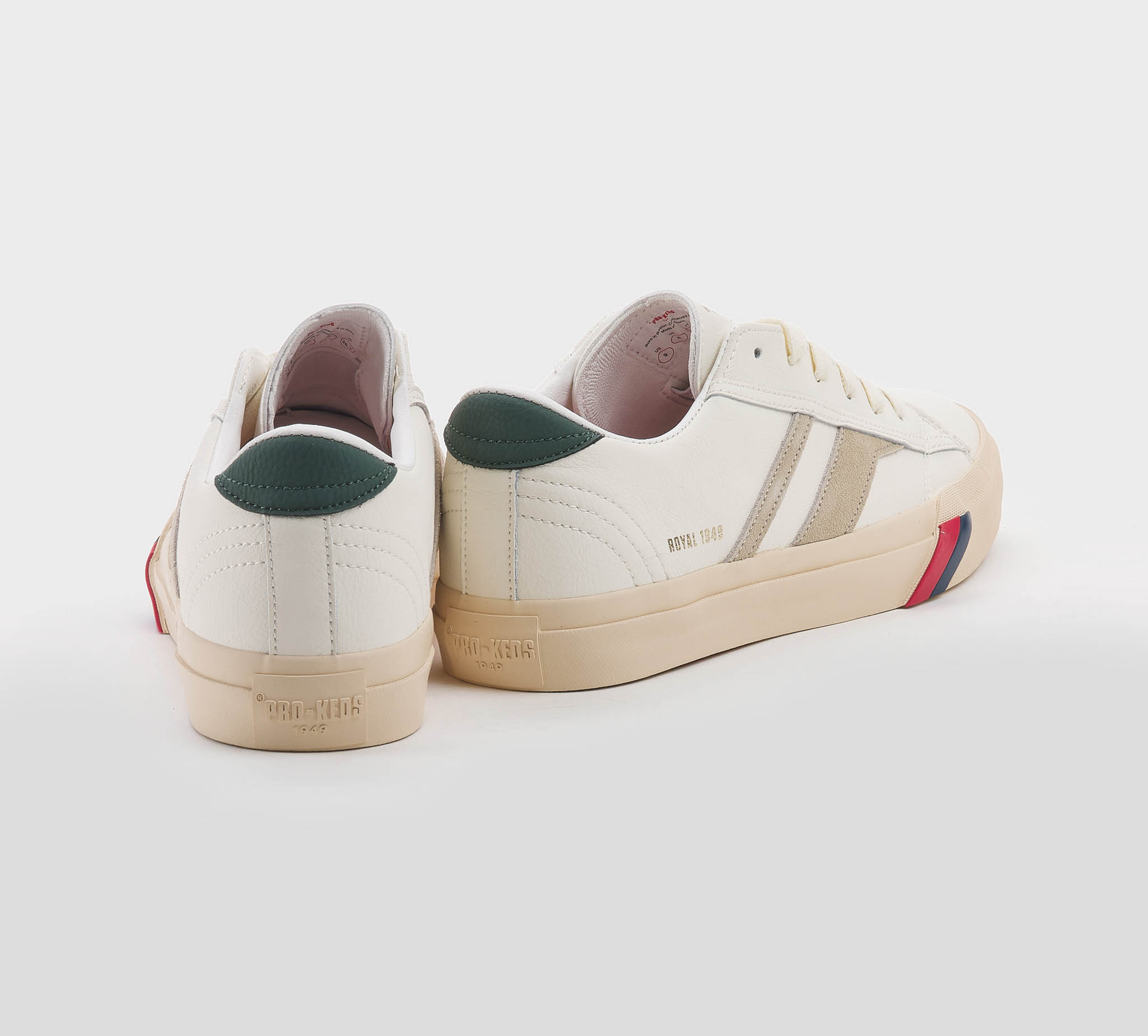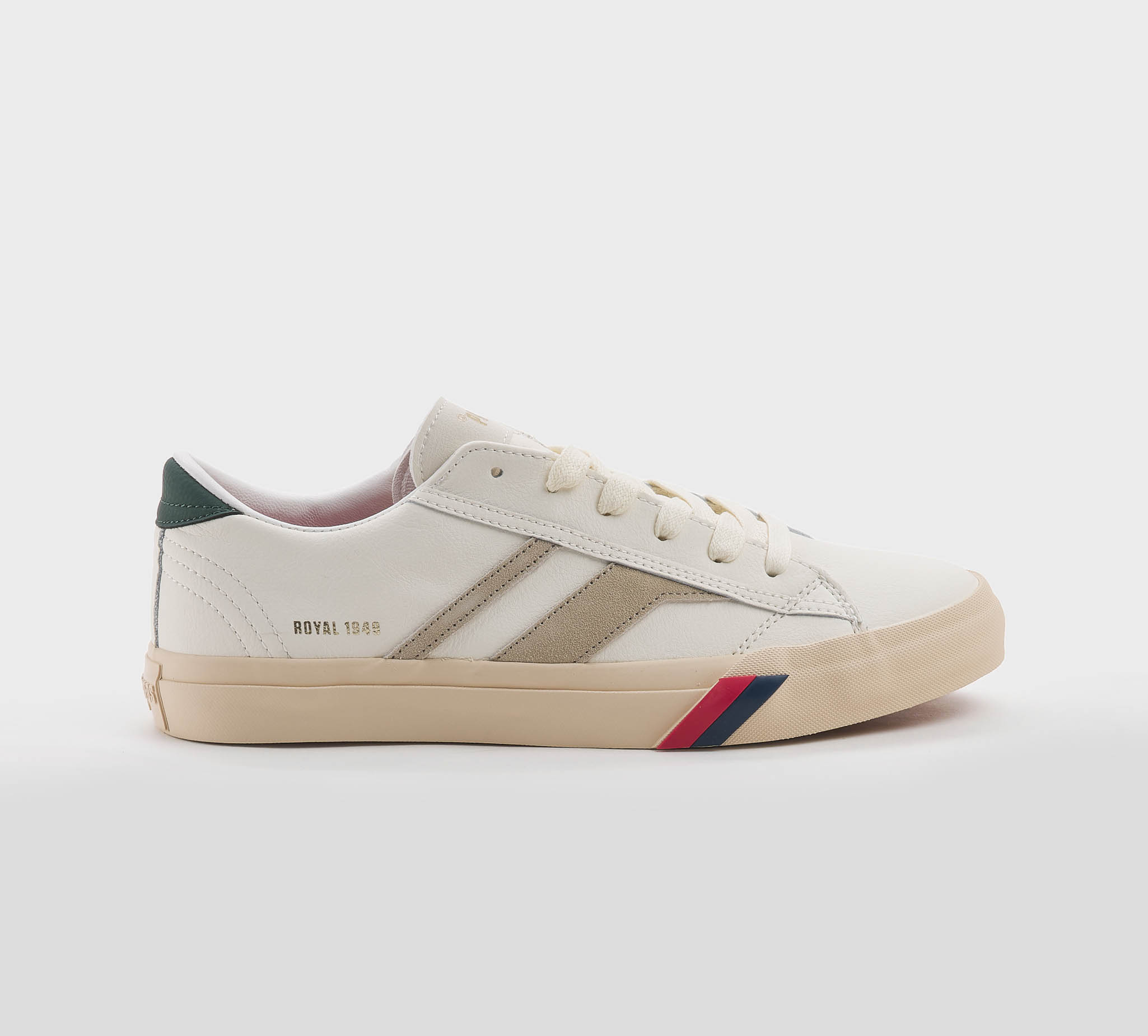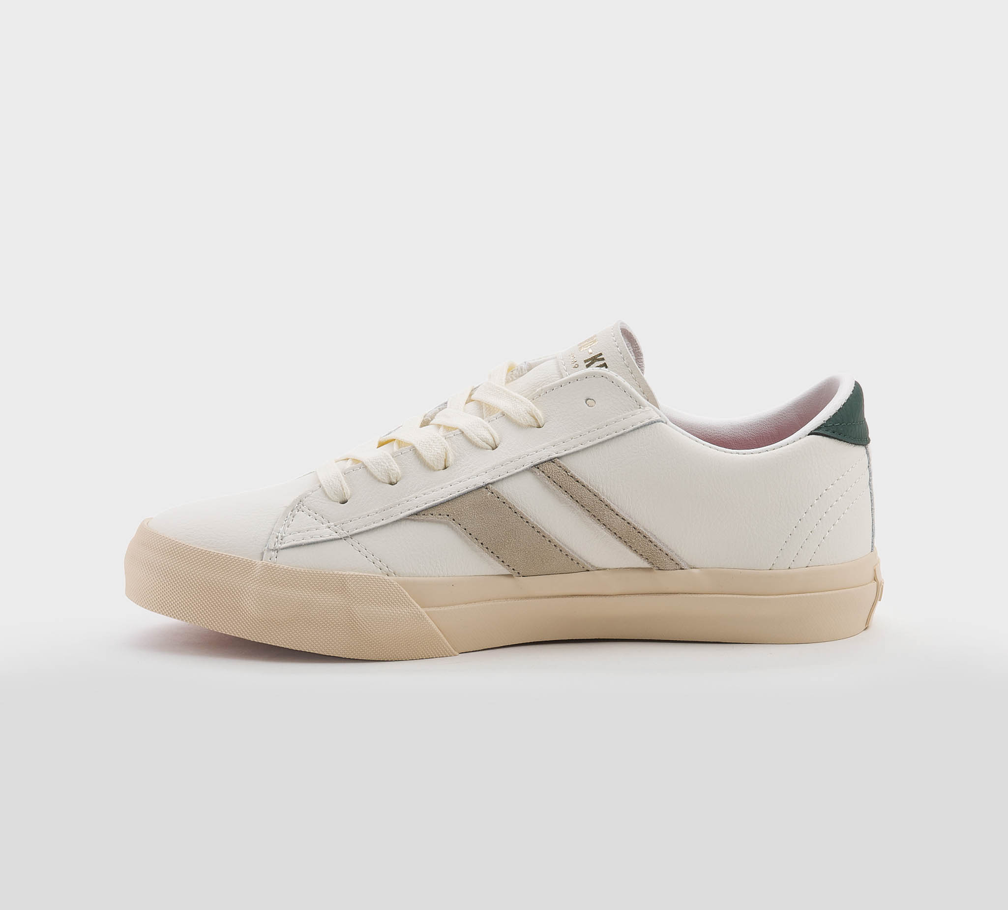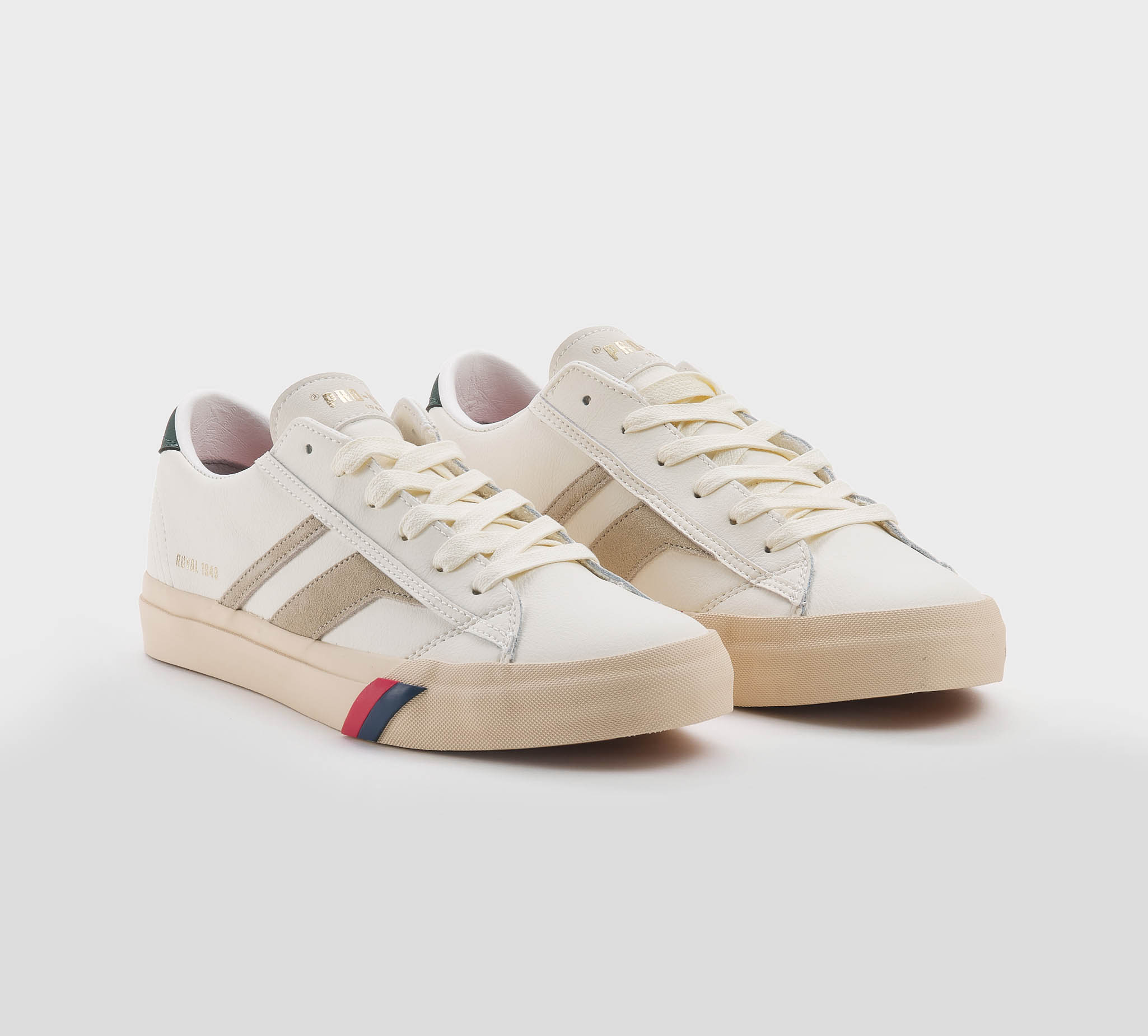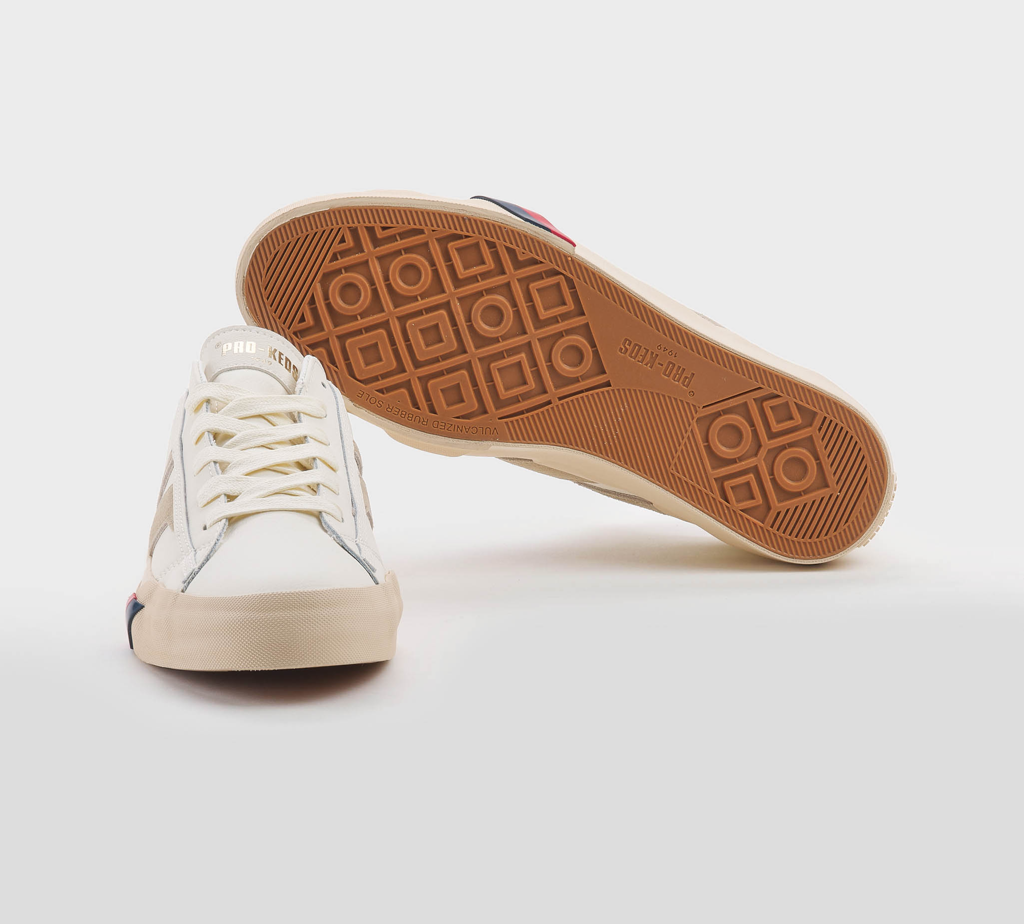 Sneakers in pelle panna -bande camosci sabbia -laccio bianco -calzata regolare Fondo gomma SS 26