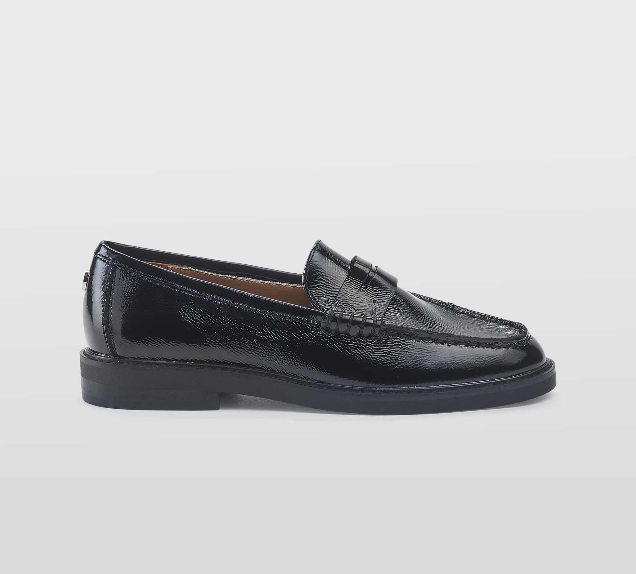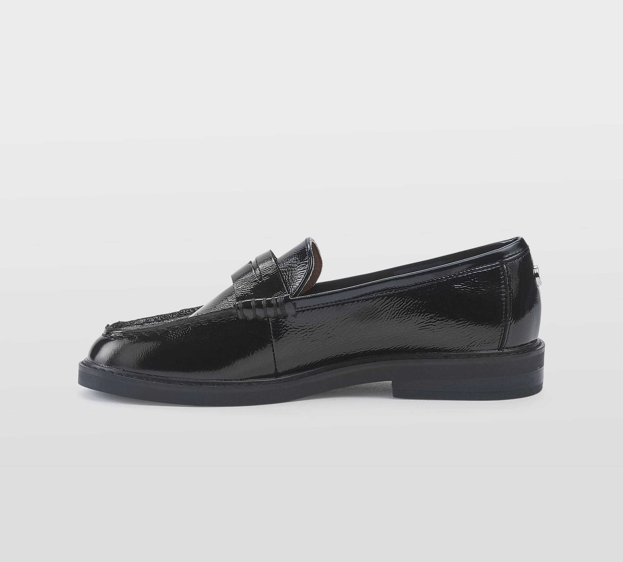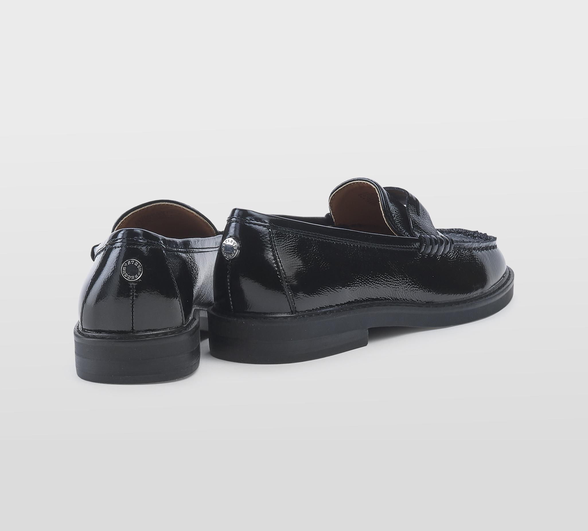 Mocassino in naplak nero -barretta nero -tacco cm 2,5 -calzata scarsa Fondo gomma Made in China FW 25