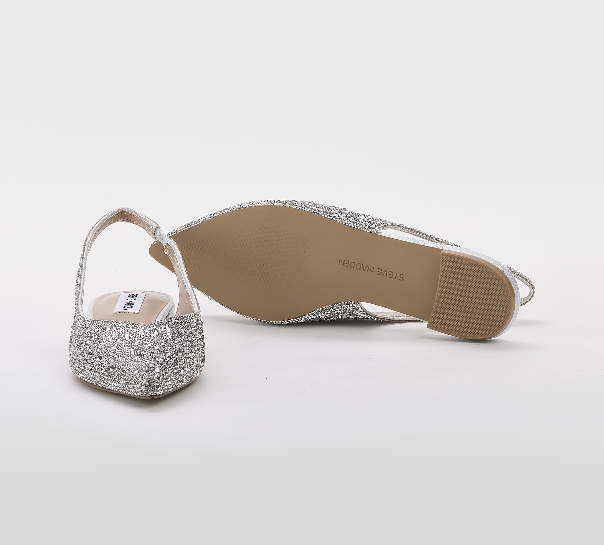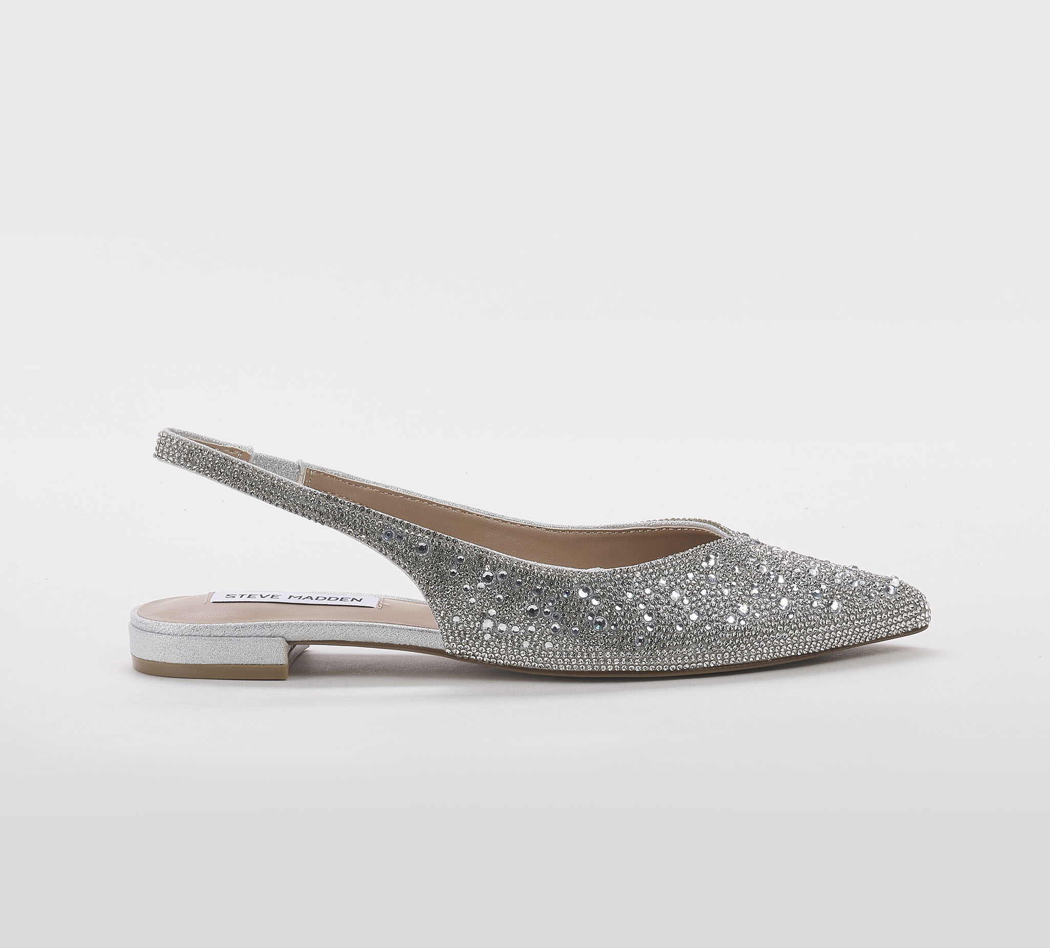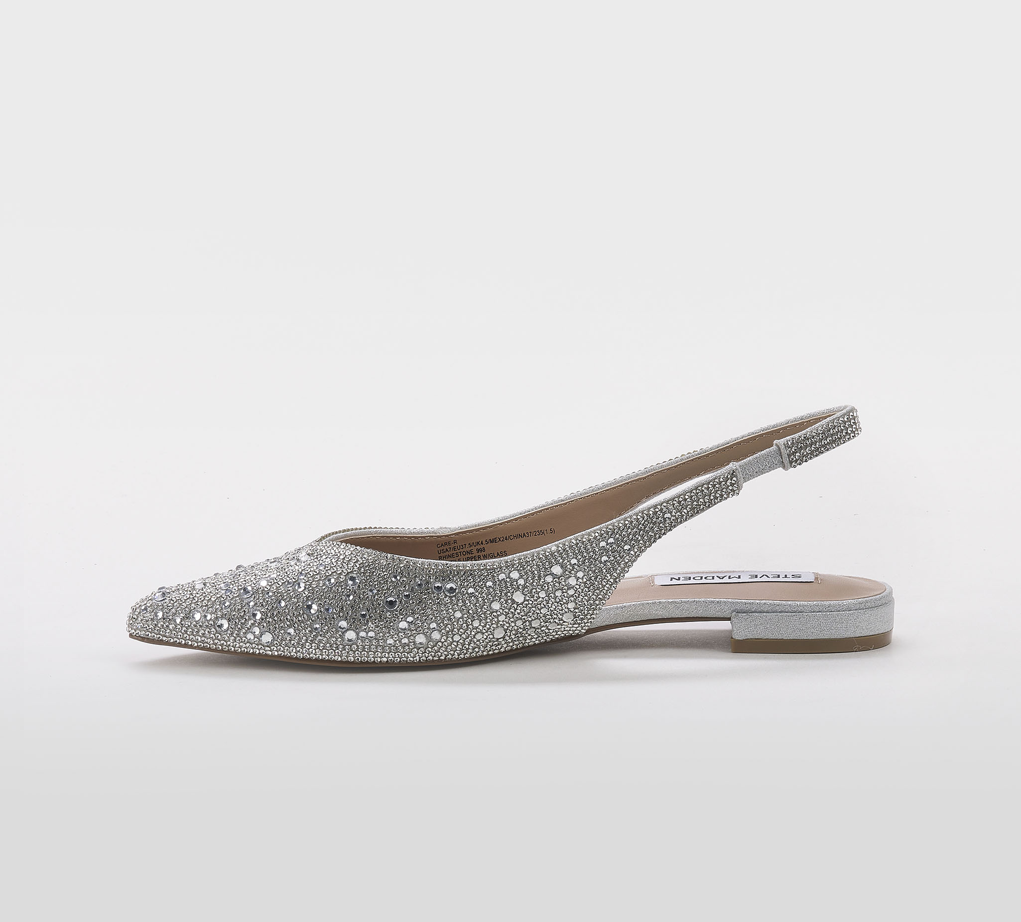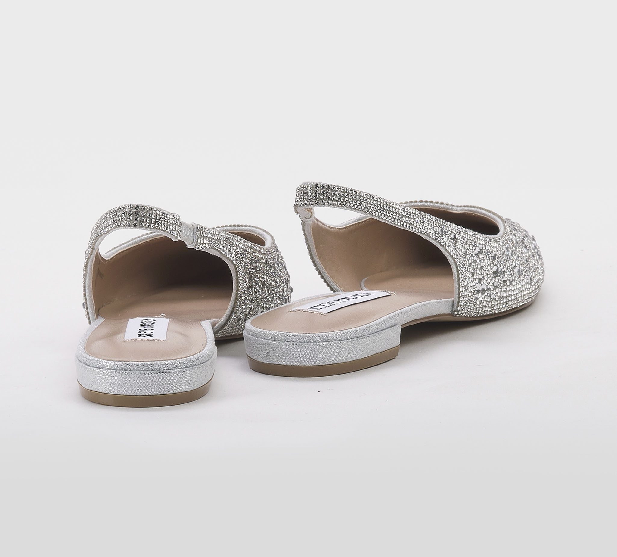 Sling back swarowsky argento -cinturino elastico -tacco cm 1,5 -calzata scarsa Fondo eco pelle Made in China SS 26
