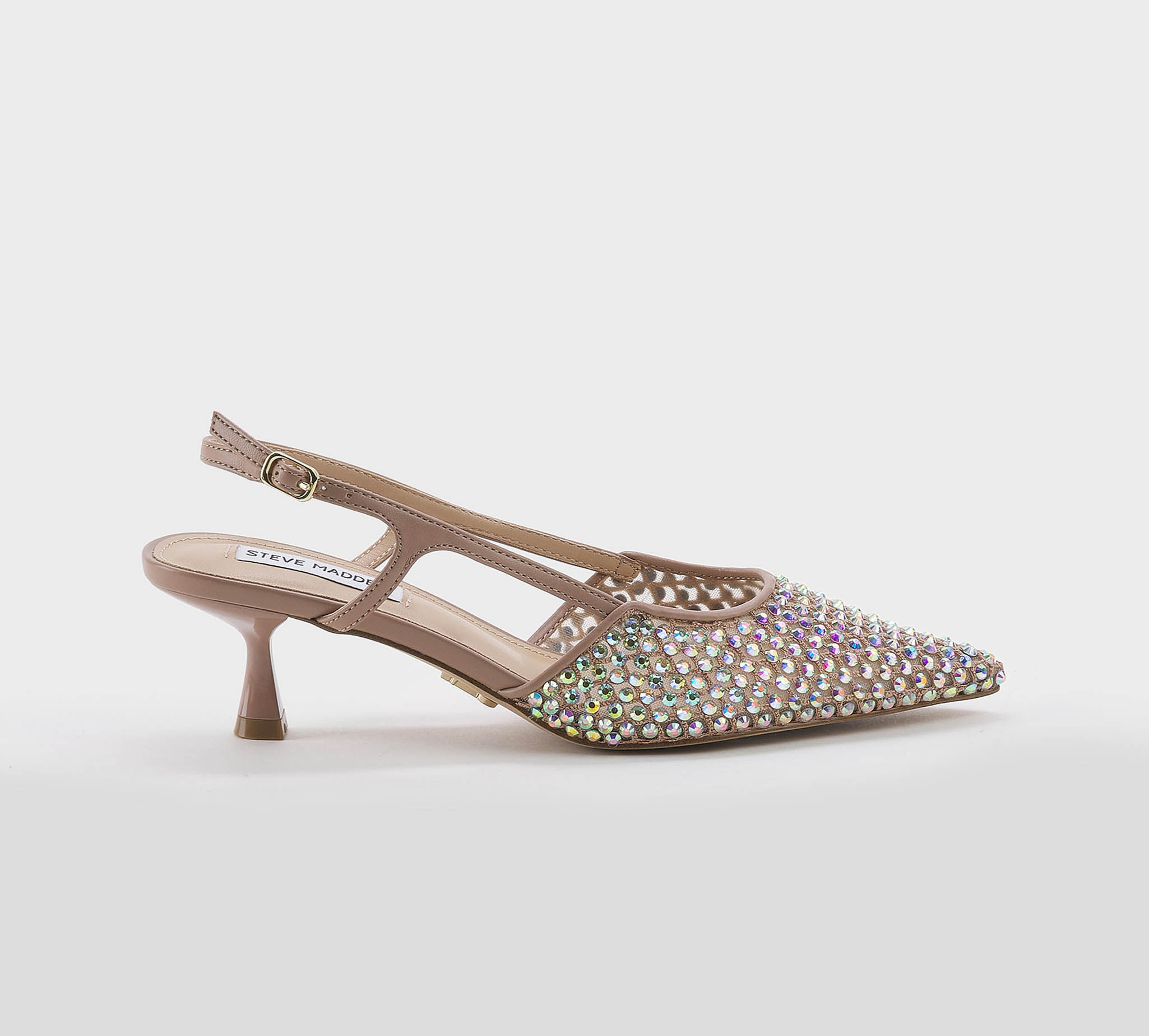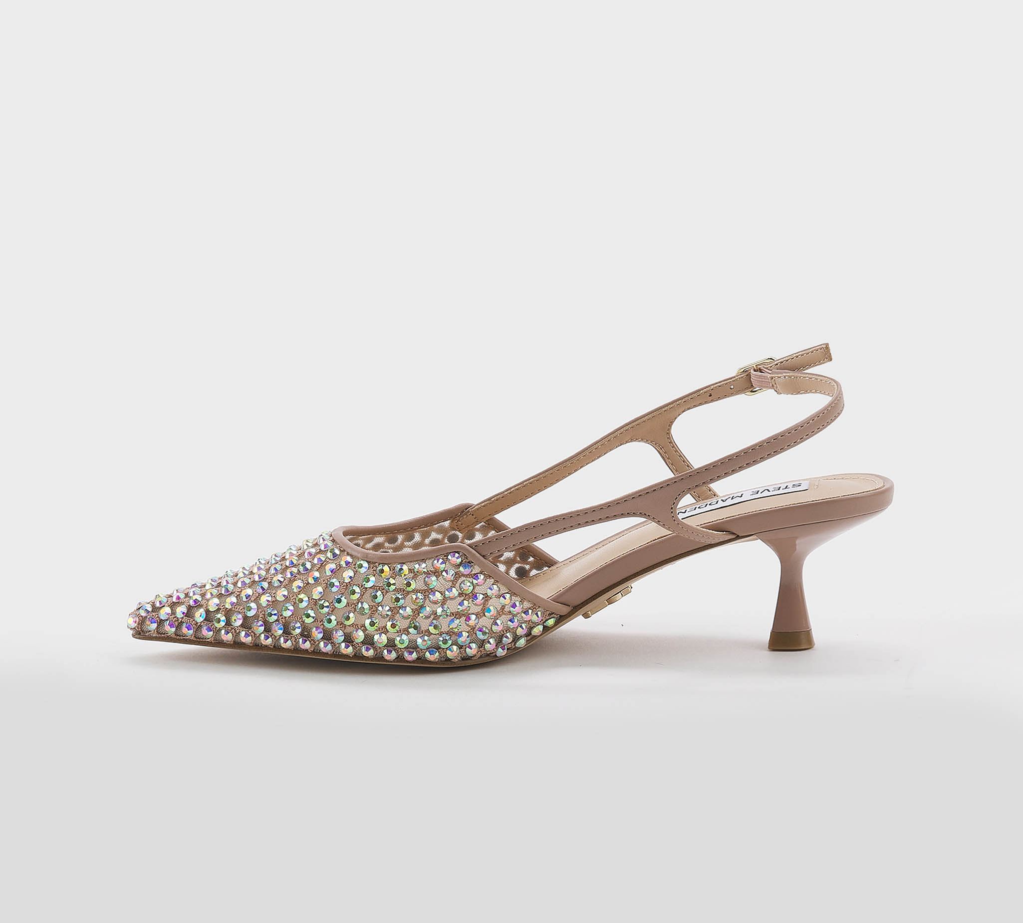 Sling back pelle nude -swarovsky boreali -cinturino al atallone -fibbietta argento -calzata scarsa Fondo gomma Made in China SS 26
