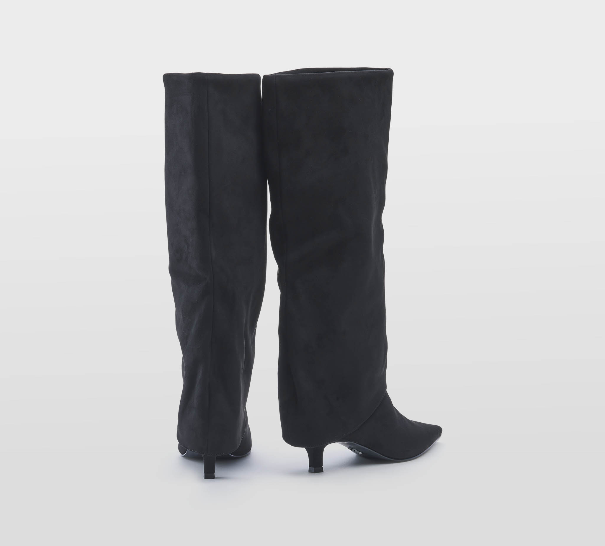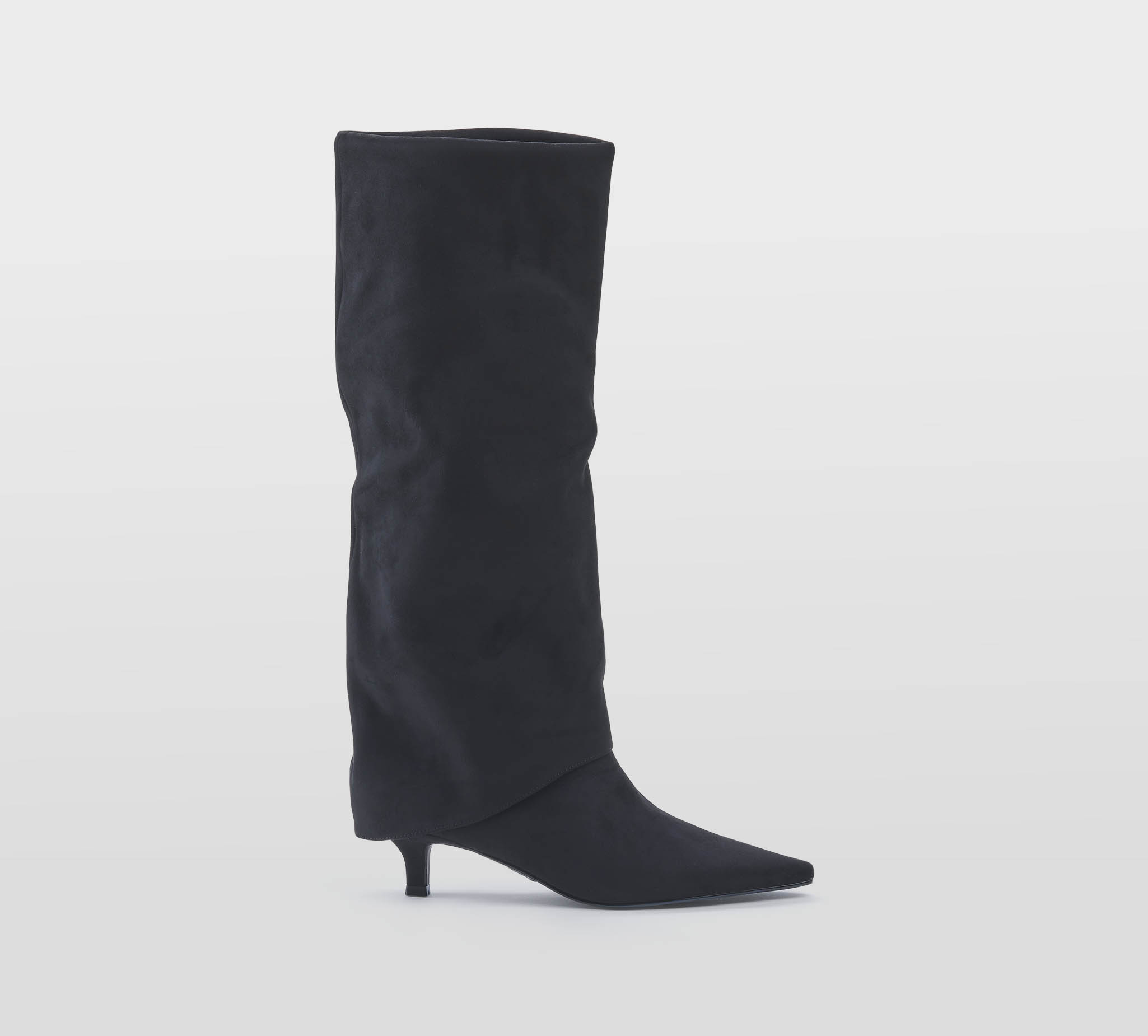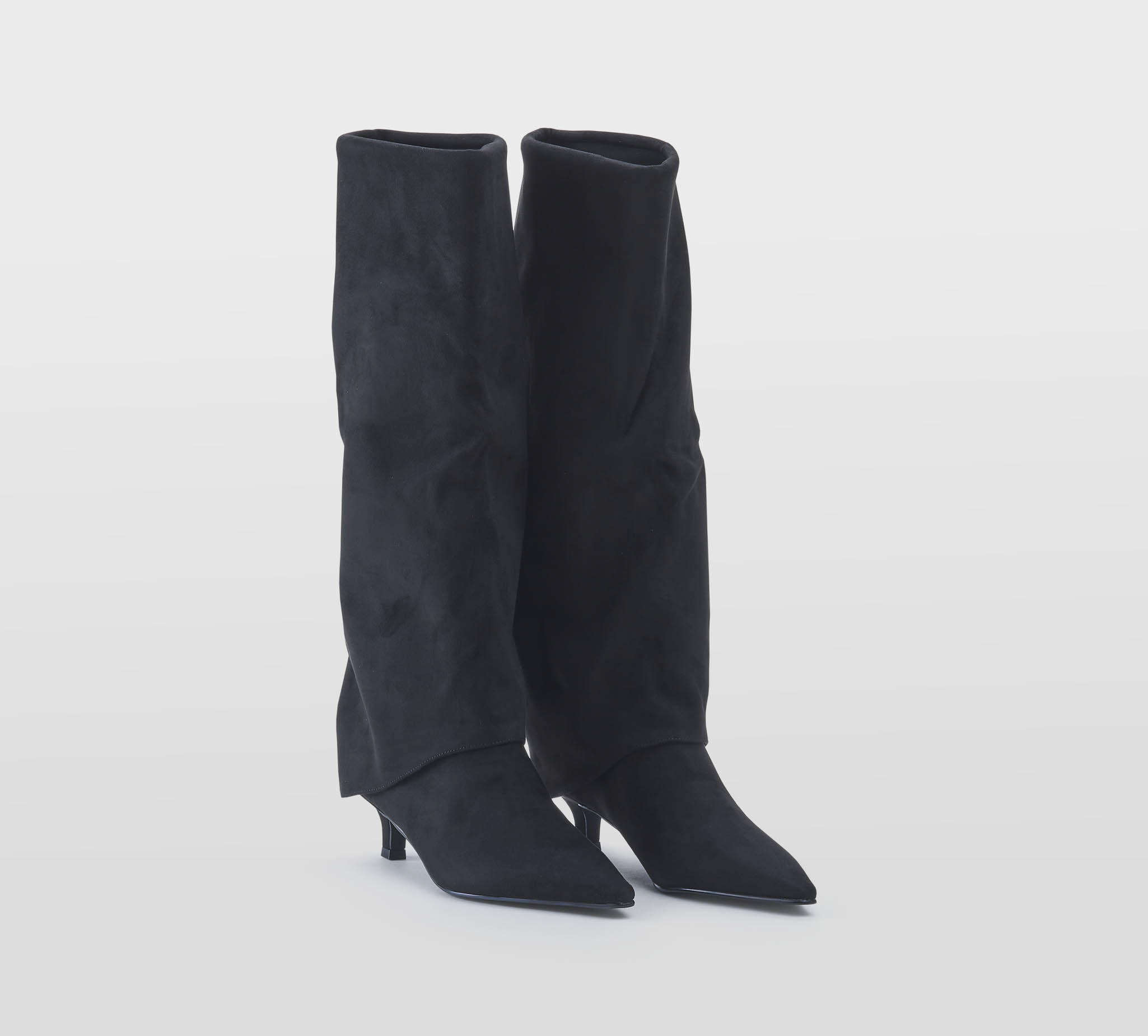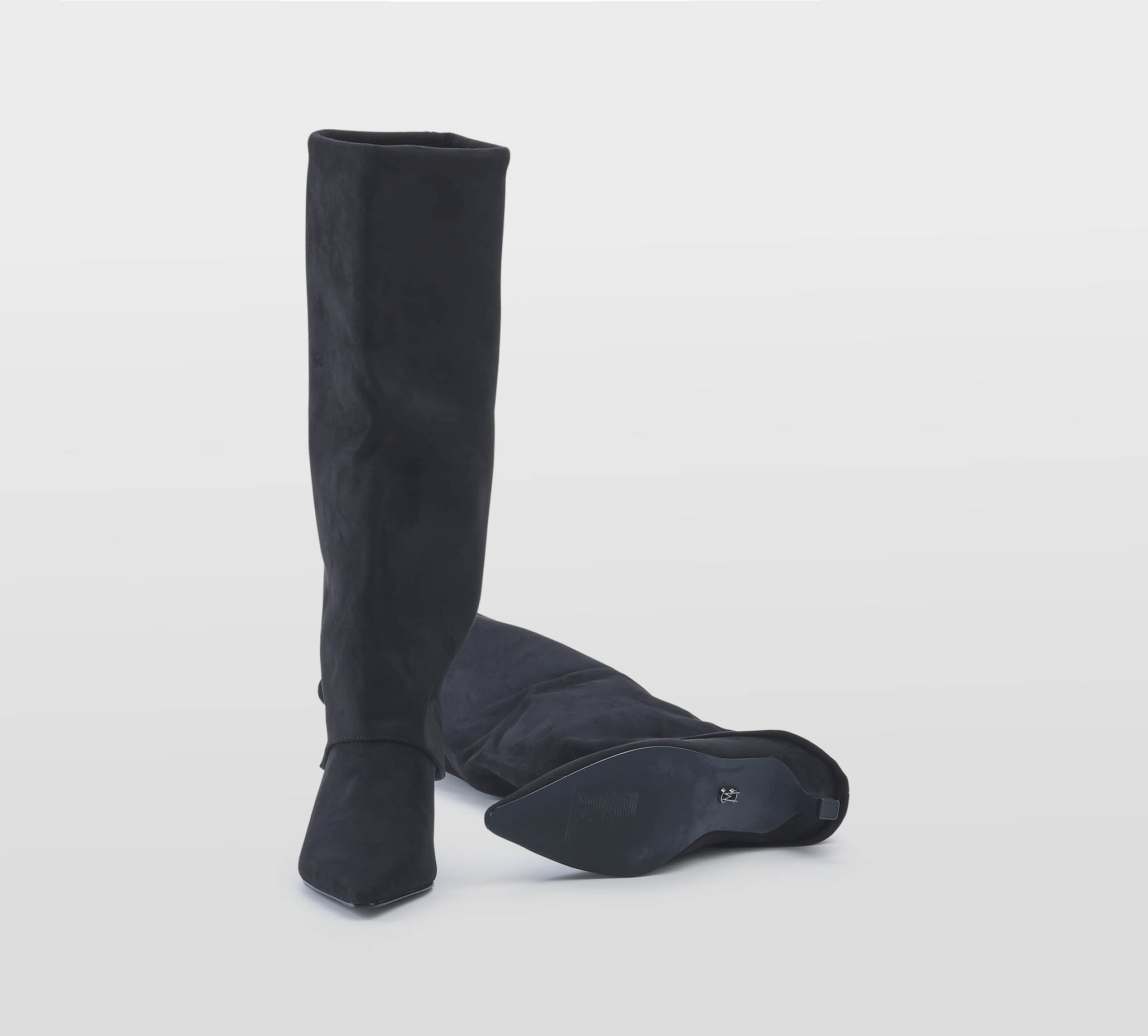stivale camoscio nero -gambale a tubo -calzata scarsa -tacco cm 5 Fondo gomma Made in China FW 25