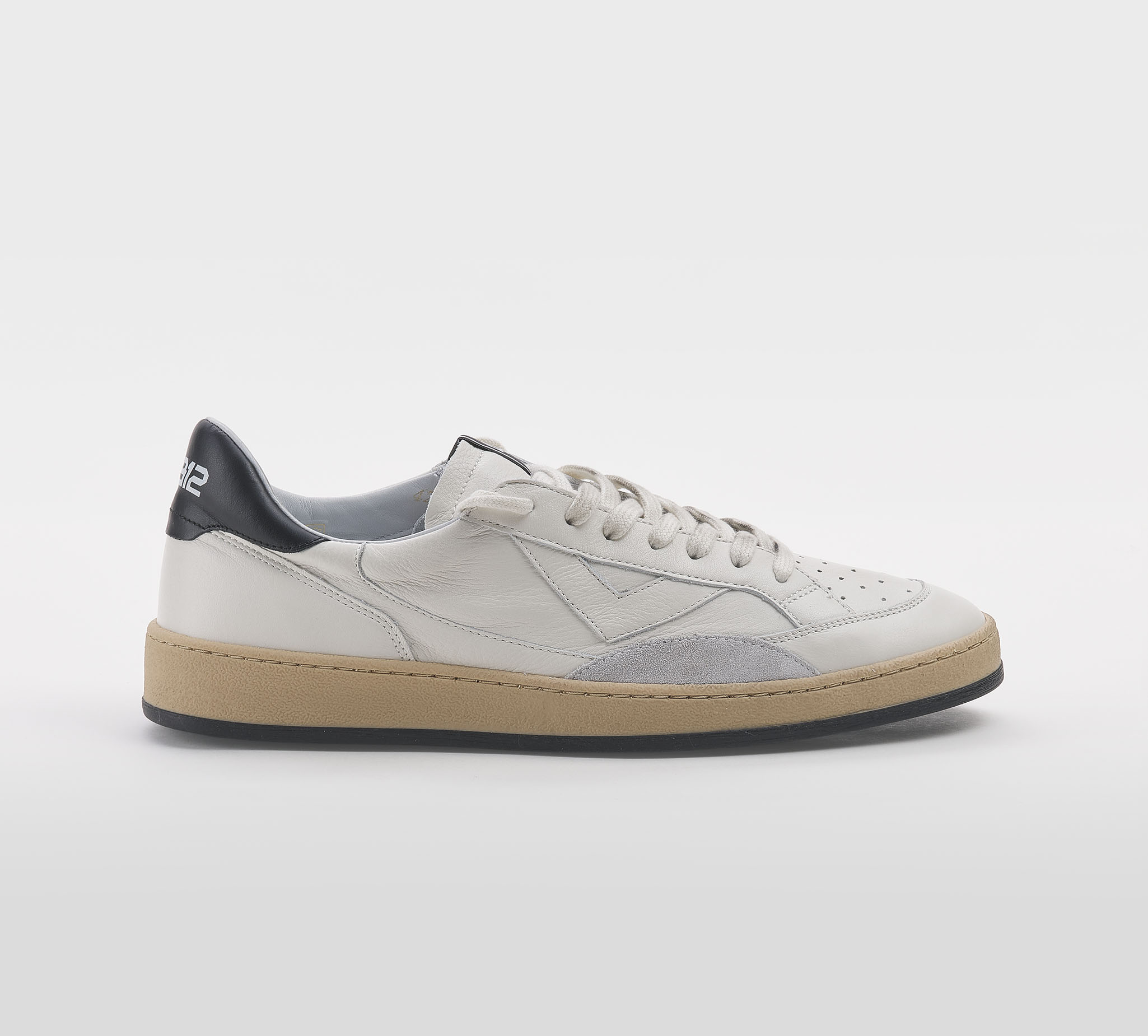 Sneakers in pelle bianco -talloncino pelle nero -laccio bianco -plantare anatomico -calzata regolare Fondo gomma SS 26