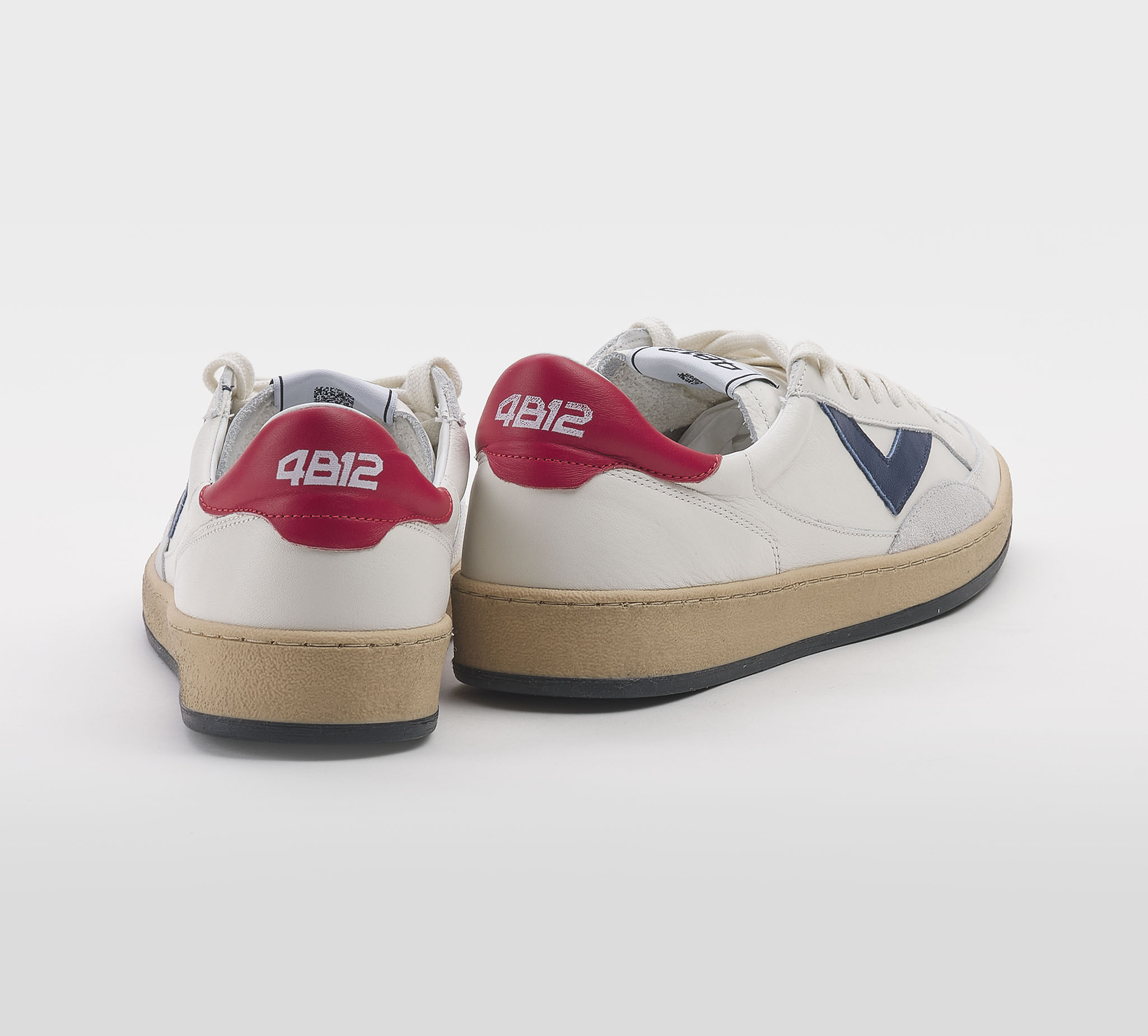 4B12 UOMO CALZATURE SNEAKERS PELLE BIANCO BLU ROSSO 40, 41-2, 42, 43-2, 44-2, 45-2 immagine n. 1/5