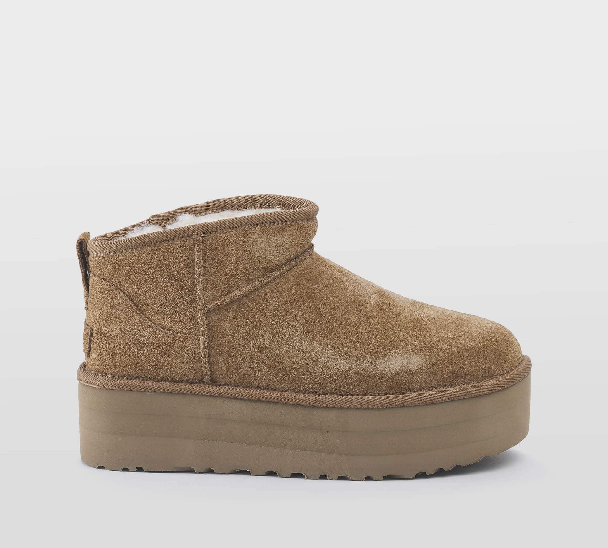 Ultra mini platform montone chestnut -platform -pelo interno panna -calzata scarsa Fondo gomma Made in China Carrie Over