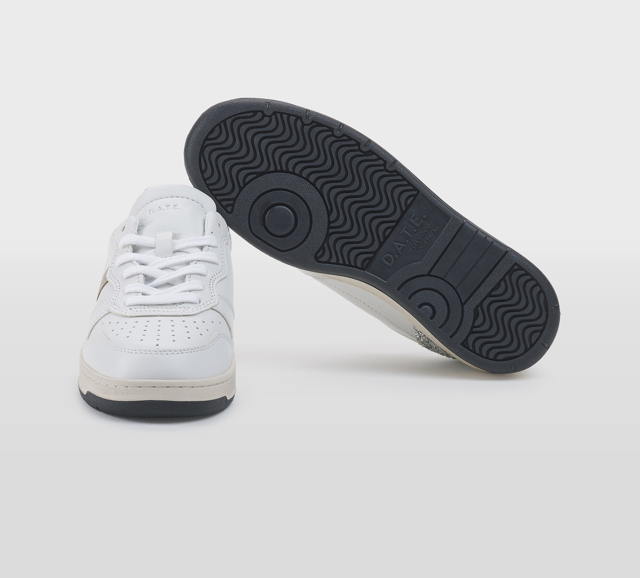 D.A.T.E DONNA Donna SNEAKERS PELLE BIANCO GLITTER ARGENTO 36, 37-2, 38-2, 39-2, 40, 41-2 immagine n. 1/5