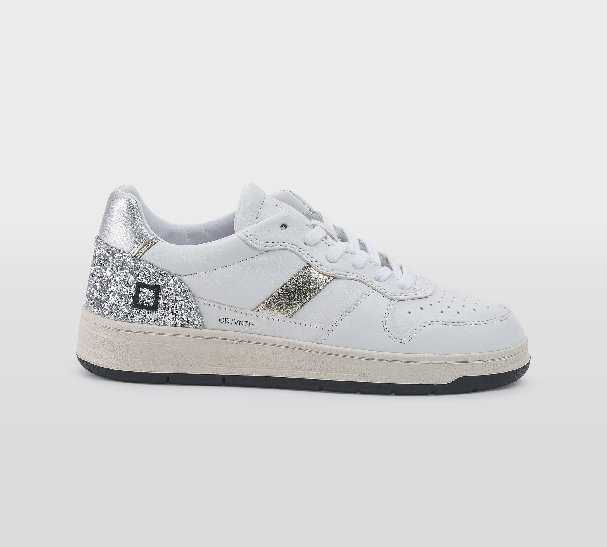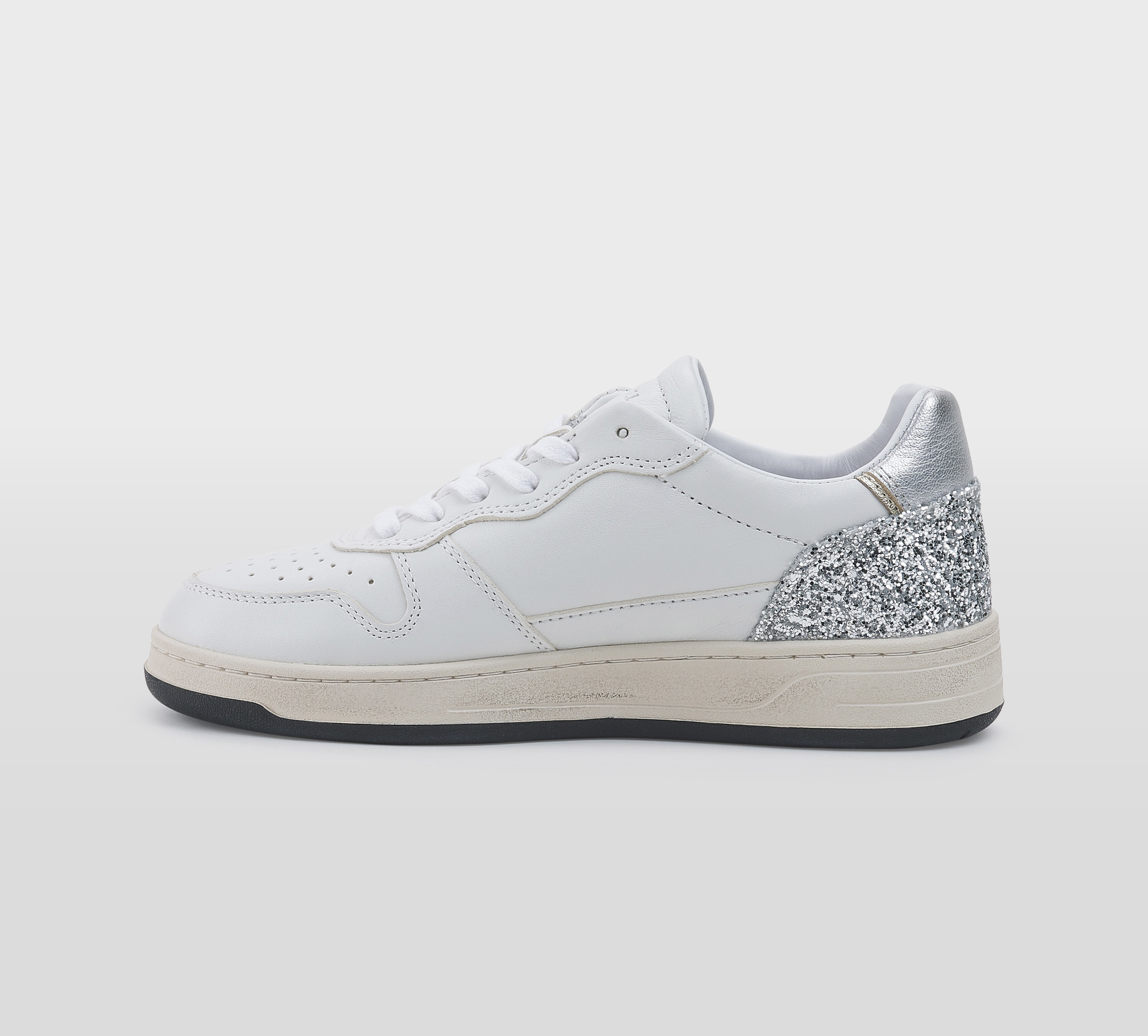 SNEAKERS PELLE BIANCO GLITTER ARGENTO
